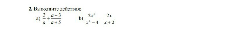 а) 3/а+а-3/а+5=3(а+5)+а(а-3)/а(а+5)=3а+15+а^2-3а/а^2+5а=15+а^2/а^2+5а