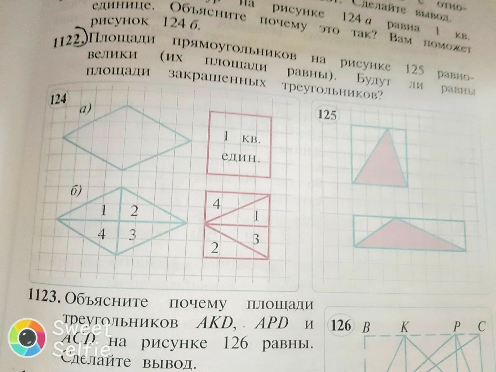 Площадь треугольника вычисляется как половина произведения основания на высоту. Площадь 1-ого (верхнего) треугольника равна: 1/2 × 4 × 4 = 8. Площадь 2-ого (нижнего) треугольника равна: 1/2 × 8 × 2 = 8. Как мы видим, их площади равны.