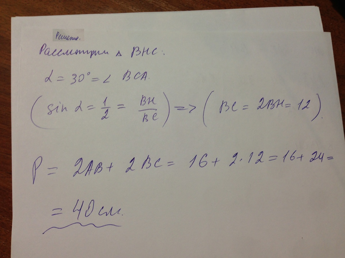 В прямоугольнике ABCD сторона АВ=8 см В удалена от диагонали АС на 6 см угол ВСА=30 градусов Вычислите периметр прямоугольника
