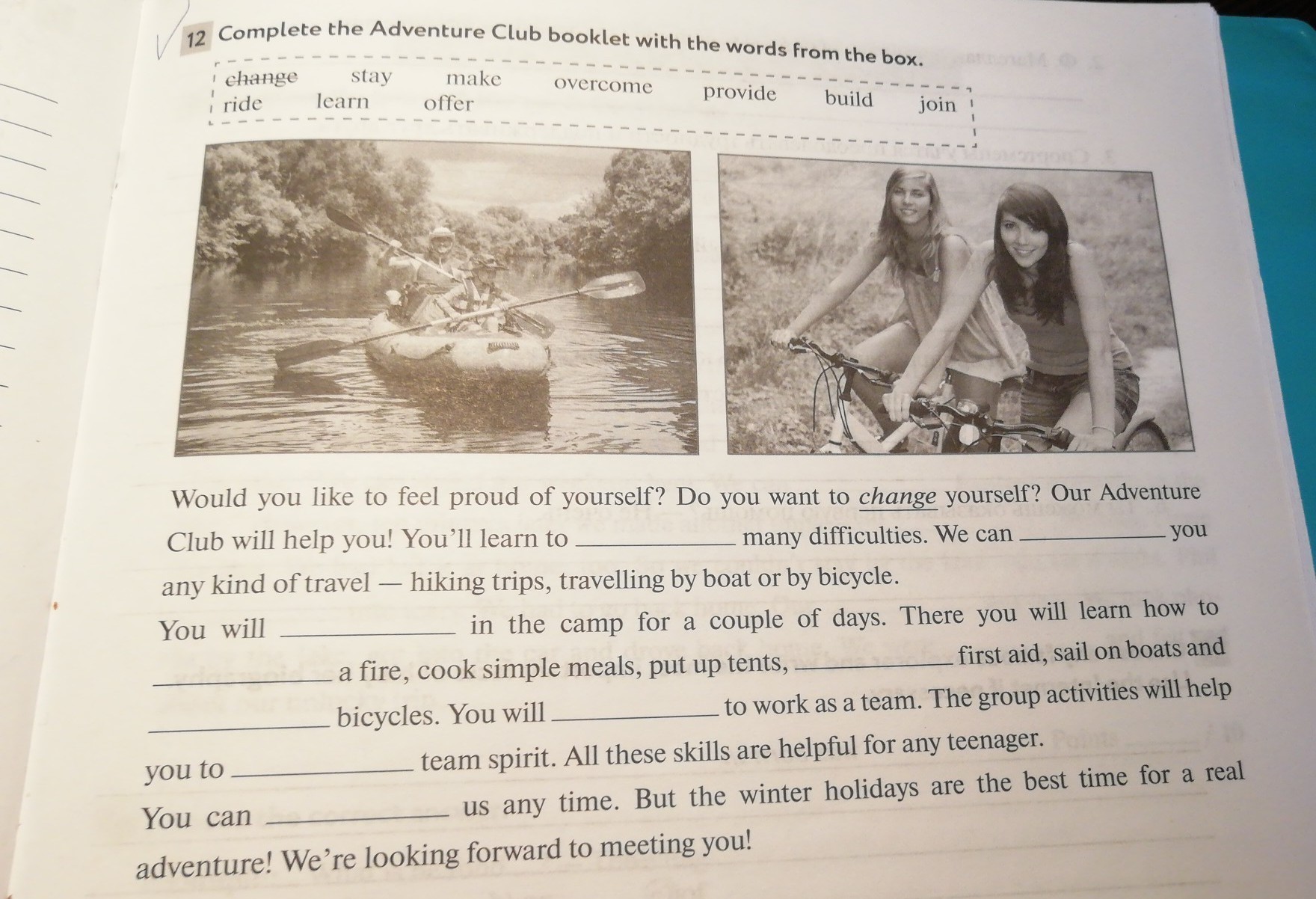 overcome, offer, stay, make, provide, ride (bicycles), learn, build, join