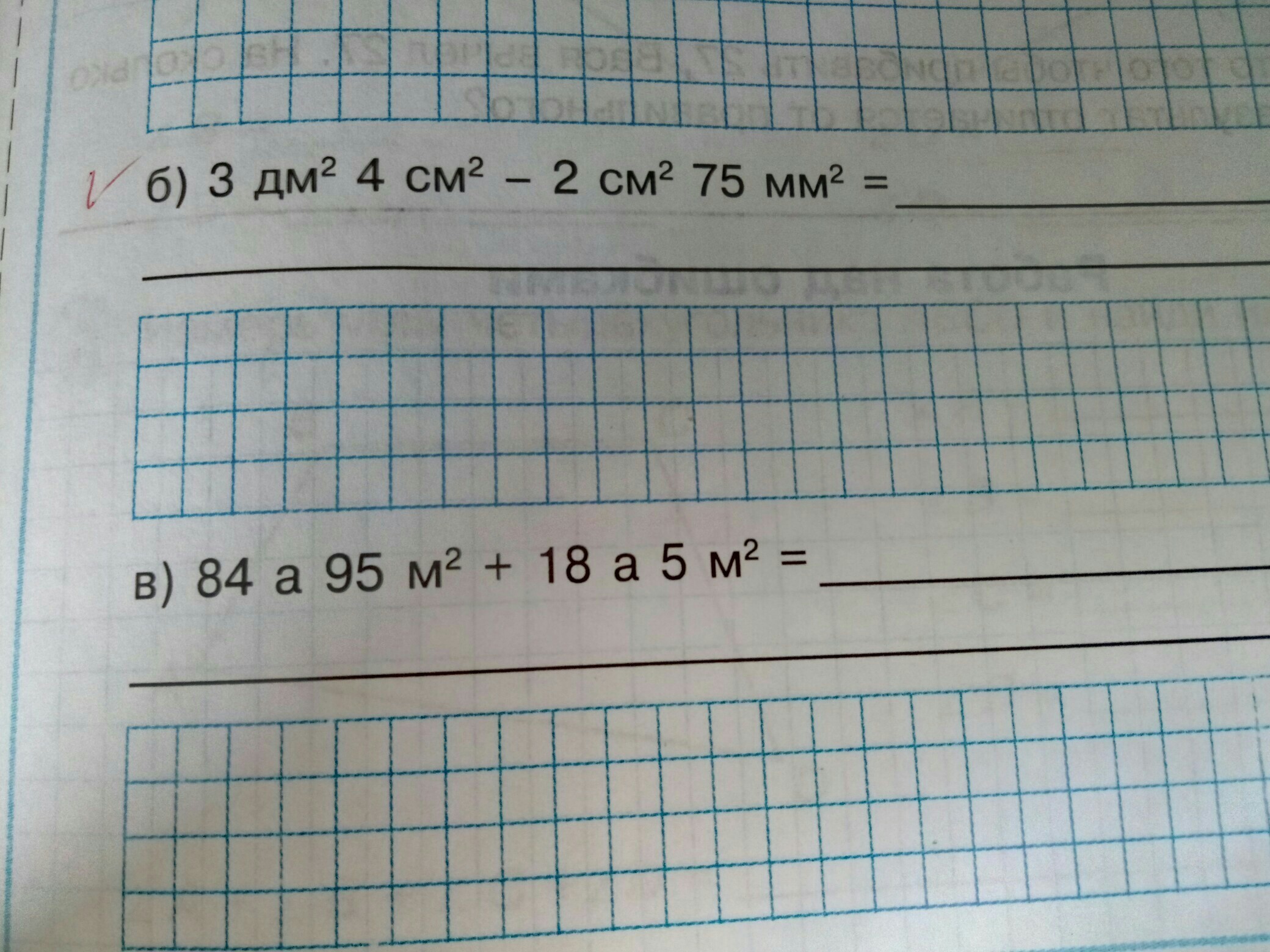 3 дм ^ 2 4 см ^ 2 - 2 см ^ 2 75 мм ^ 2 = 3 дм ^ 2 + 4 см ^ 2 - 2 см ^ 2 - 75 мм ^ 2 = 3 дм ^ 2 + см ^ 2 ( 4 - 2 ) - 75 мм ^ 2 = 3 дм ^ 2 + 2 см ^ 2 - 75 мм ^ 2 = 3 * 10 см ^ 2 + 2 см ^ 2 - 75 мм ^ 2 = 30 см ^ 2 + 2 см ^ 2 - 75 мм ^ 2 = ( 30 + 2 ) см ^ 2 - 75 мм ^ 2 = 32 см ^ 2 - 75 мм ^ 2 = 32 * 10 мм ^ 2 - 75 мм ^ 2 = 320 мм ^ 2 - 75 мм ^ 2 = ( 320 - 75 ) мм ^ 2 = 245 мм ^ 2 ; То есть получили, 3 дм ^ 2 4 см ^ 2 - 2 см ^ 2 75 мм ^ 2 = 245 мм ^ 2 ; Ответ: 3 дм ^ 2 4 см ^ 2 - 2 см ^ 2 75 мм ^ 2 = 245 мм ^ 2.