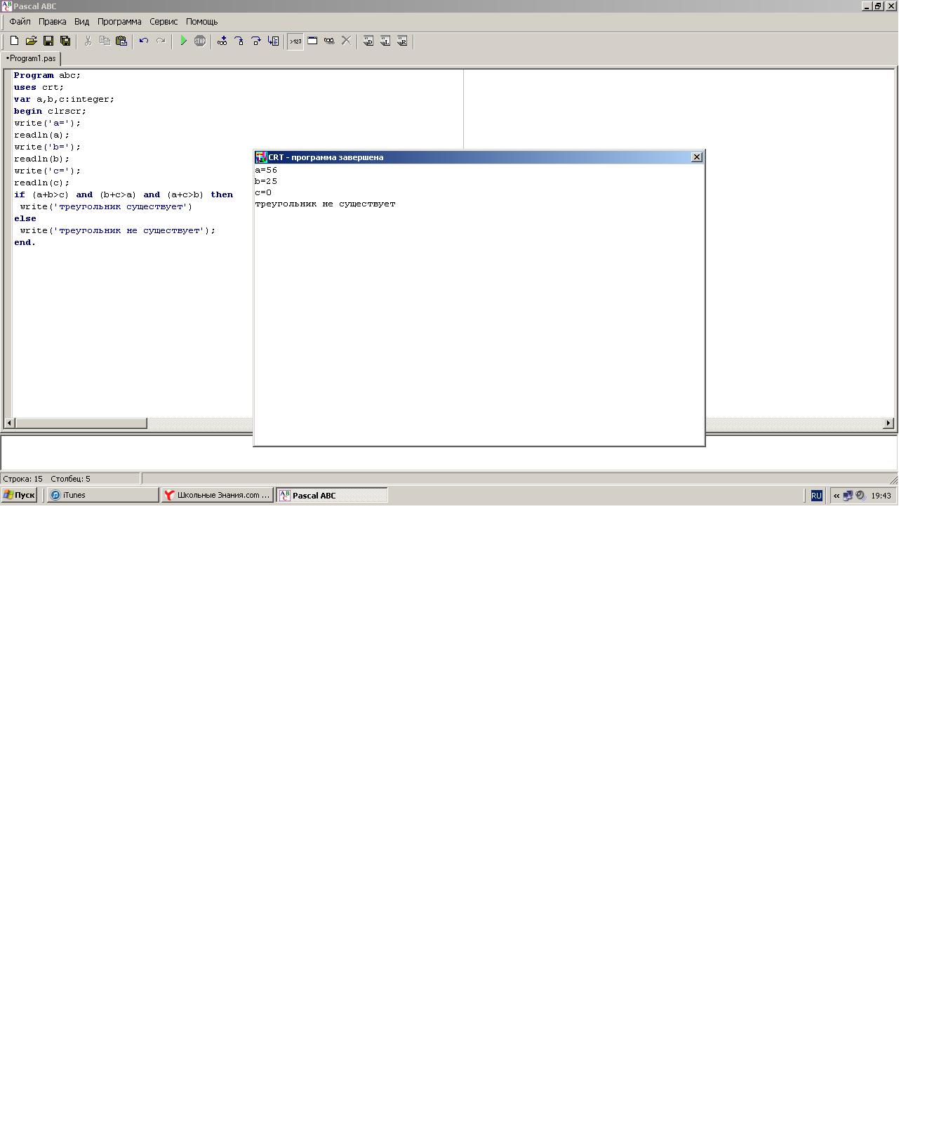 write('треугольник не существует');