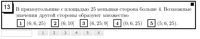 В прямоугольнике с площадью 25 меньшая сторона больше 4. Какон множество образует возможное значение другой стороны?