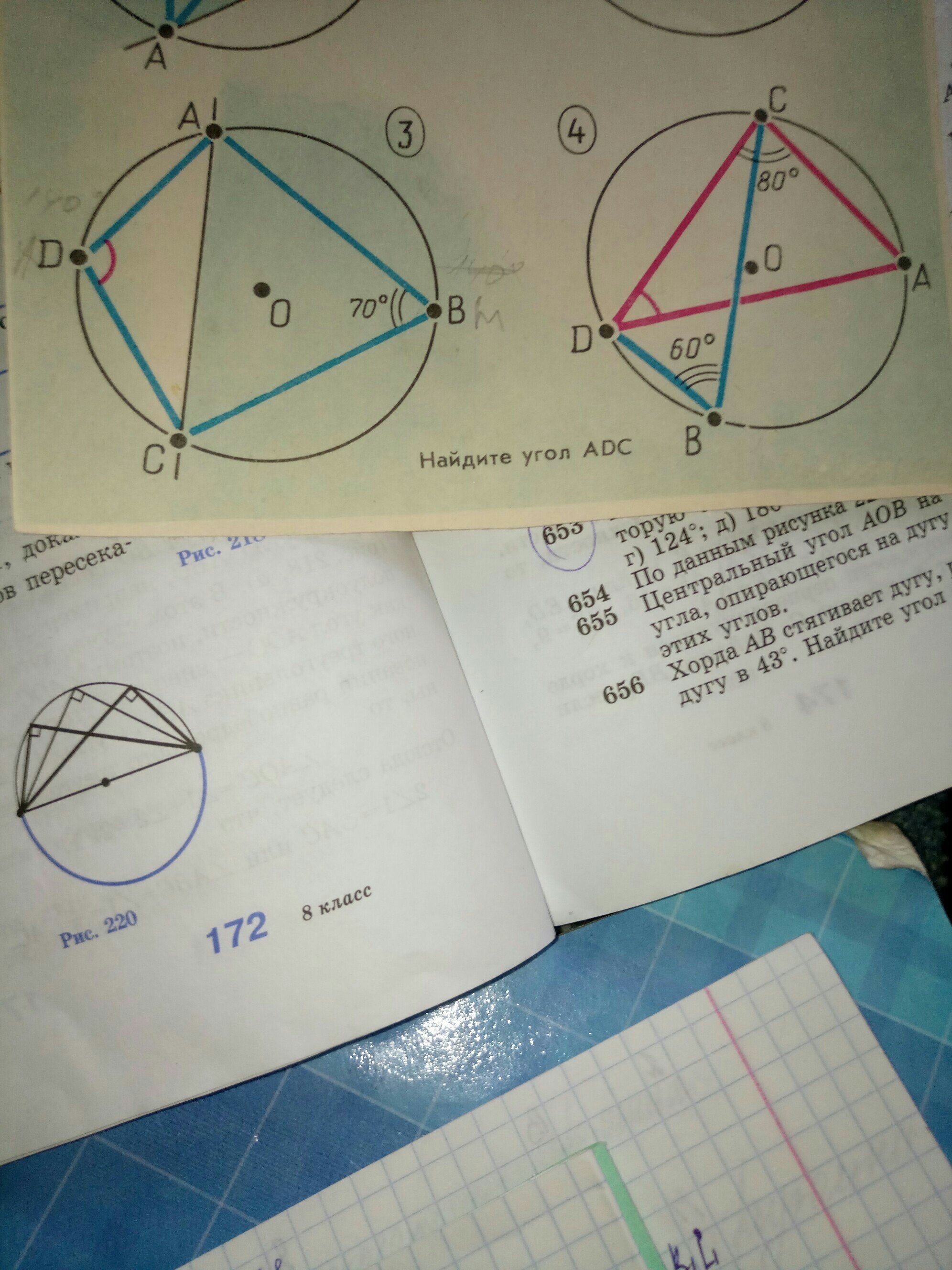 4. Угол ADC = 1/2*220 = 110 градусов.