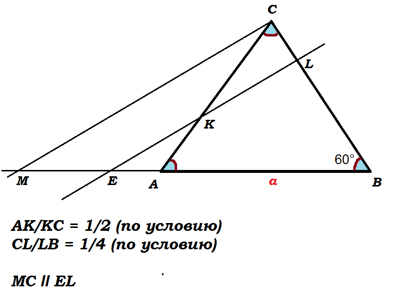 проведем через пункт С прямую, параллельную прямой EL, пункт пересечения этой прямой с прямой АВ обозначим М