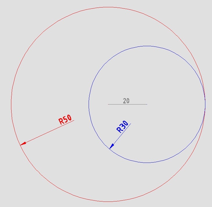 расстояние между центрами окружностей, касающихся внутренним образом, 20 см, а радиус большей из них 50 см. найдите радиус меньшей окружности.