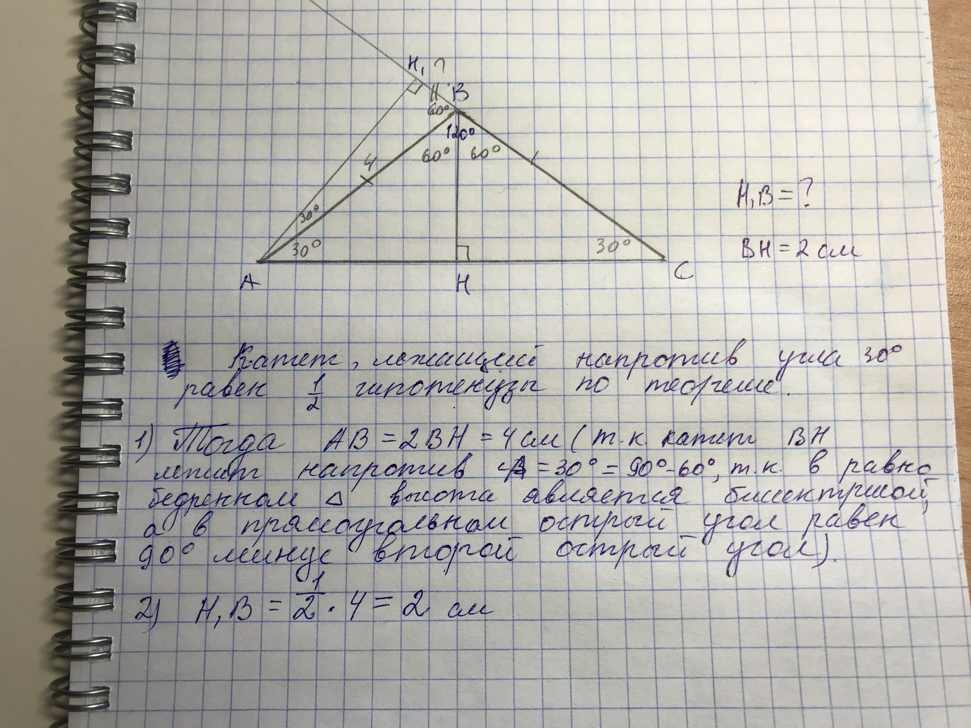 В равнобедр. треугольнике АВС градусная мера угла, лежащего против основания AC, равна 120° . Вычислить расстояние от вершины B до прямой , проходящей через вершину А и перпендикулярной прямой BC , если расстояние от вершины B да прямой АС рано 2 см.