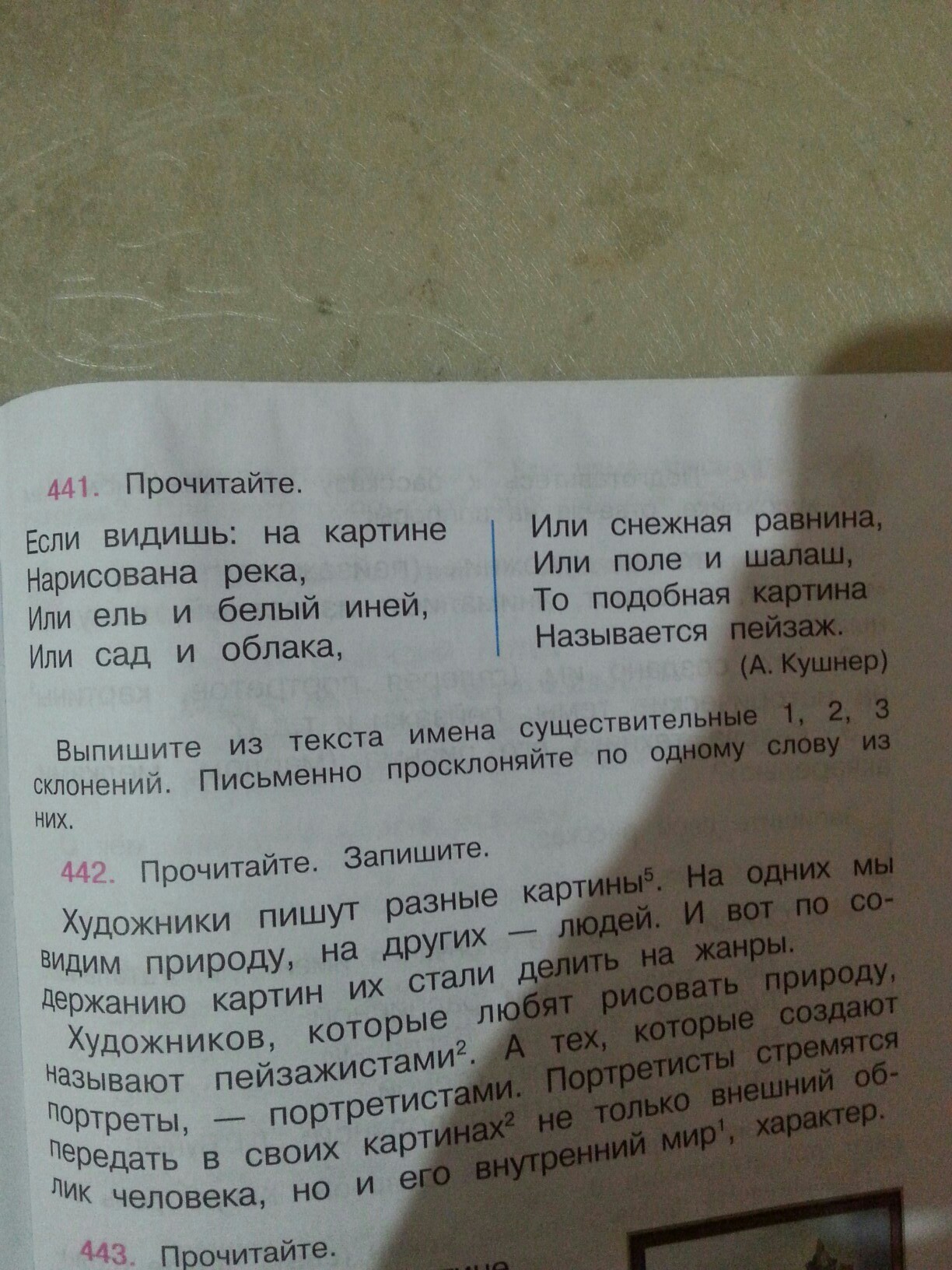 номер 441 где внизу есть выпышите из текста имена существительные 1 2 3 склонения и так далее