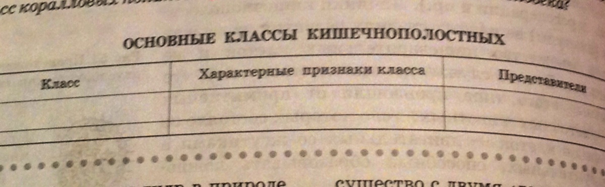 1. класс Гидроидные ---- мешковидная вытянутая форма тела, подошвой прикрепляется к субстрату, рот с щупальцами на противоположной стороне, передвигается медленно с подошвы на рот и обратно. Живут в пресных водоемах. Гермафродиты. ---Пресноводная гидра