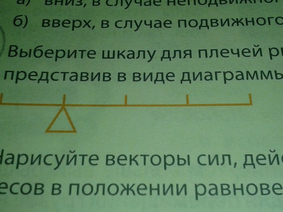 выберите шкалу для плечей рычага и для прилагаемых к нему сил, представив в виде диаграммы положение равновесия....