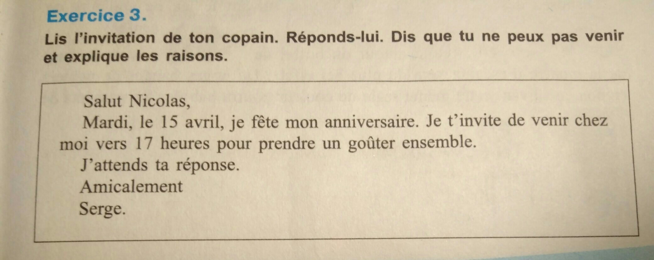 Je te remercie de ton invitation à ton gouter d'anniversaire. Je profite pour te souhaiter joyeux anniversaire par anticipation. Malheureusement je ne pourrai pas être présent car je suis en ce moment à Paris pour un séjour d'un mois.