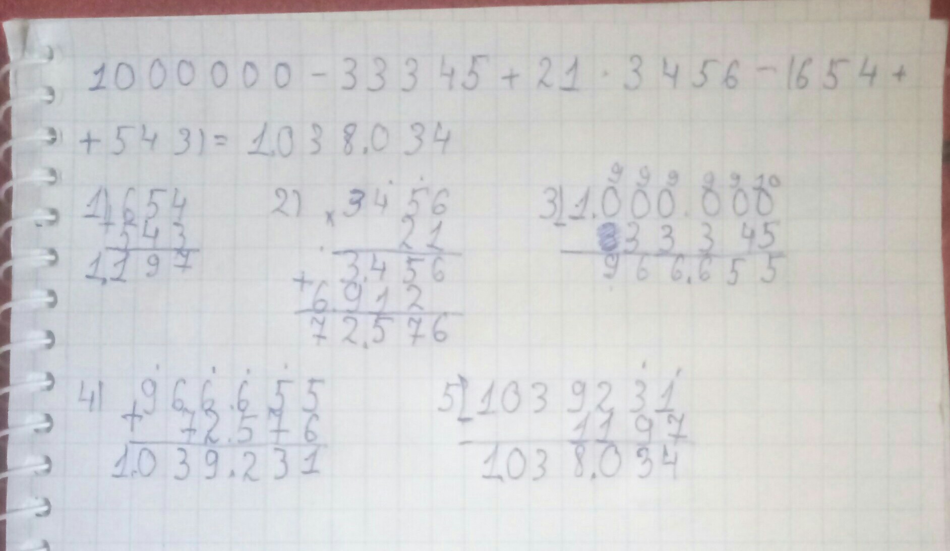 1000000-33345+21*3456-(654+543)= 1038034