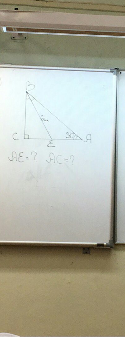 < CBA = 90-30=60. Значит Треугольник CBA равнобедренный, так как угля при основании равны. Тогда EA=CB=6.