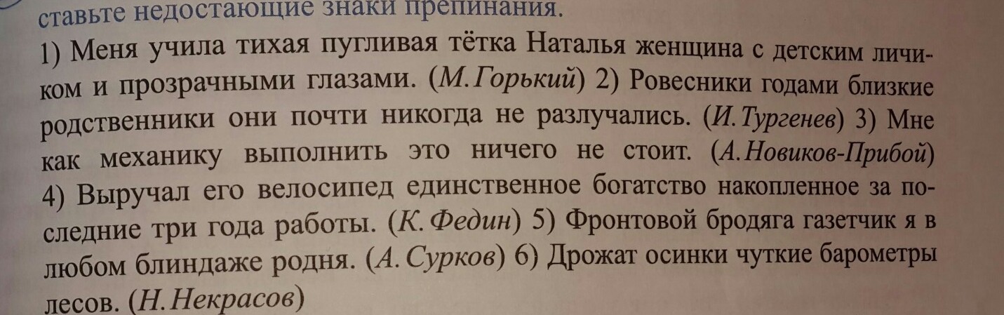 1. Меня учила тихая,пугливая тетка Наталья, женщина с детским личиком и прозрачными глазами.