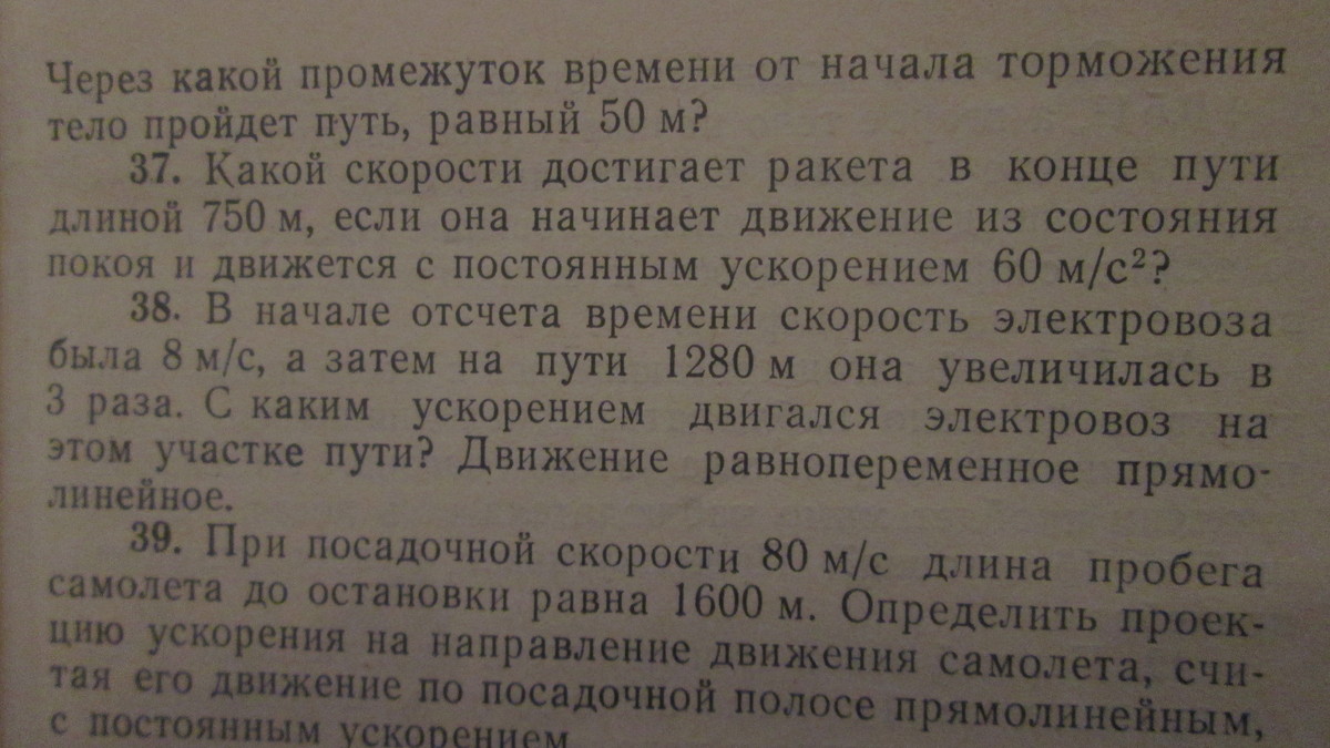 37. Раз из состояния покоя, то скорость изначально равна 0. тогда без проблем ищем конечную скорость. Времени так же у тебя нет, значит можно использовать формулу:
