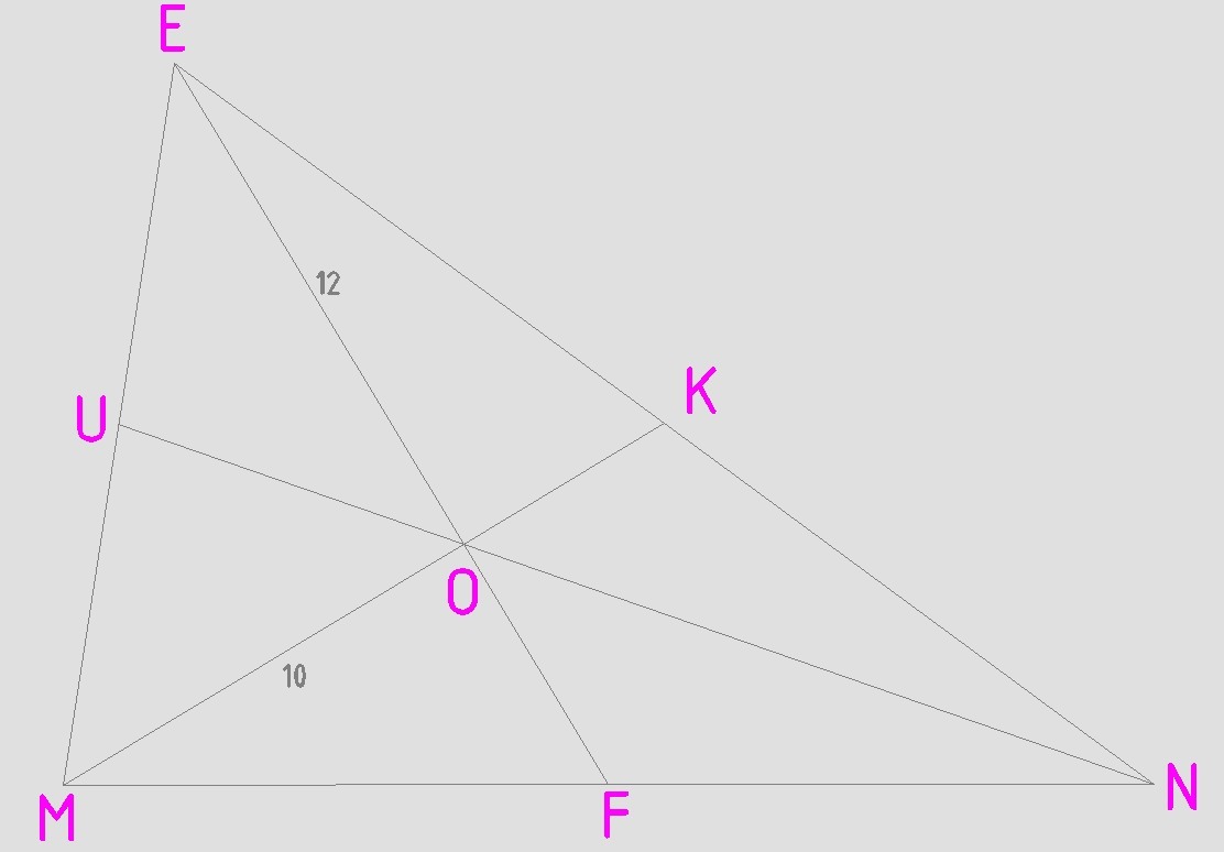 EF, MK, UN - медианы, пересекаются в одной точке, точкой пересечения делятся в отношении 2 к 1 начиная от вершины угла. из которого построены.