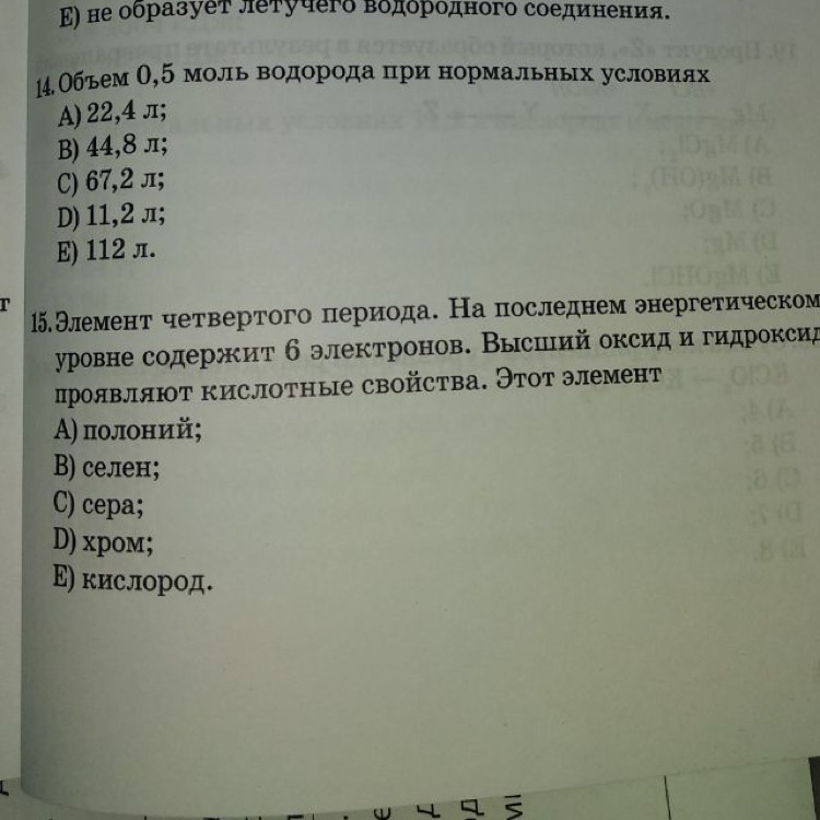14) 0,5*22,4 = 11,2 л Ответ: D)