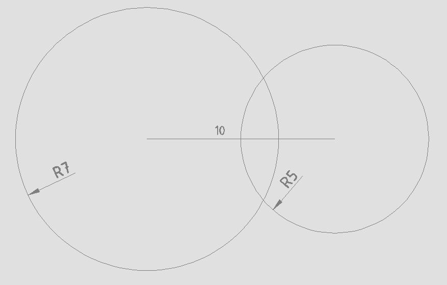 Расстояние между центрами двух окружностей радиусами 7 и 5 см равно 10 см. Каково взаимное расположение данных двух окружностей?