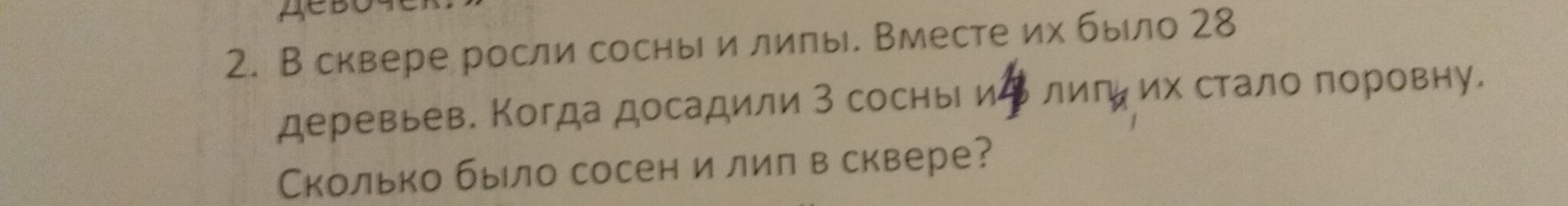 (28 - х) - лип в сквере . По условию задачи имеем : х + 3 = (28 - х) + 4
