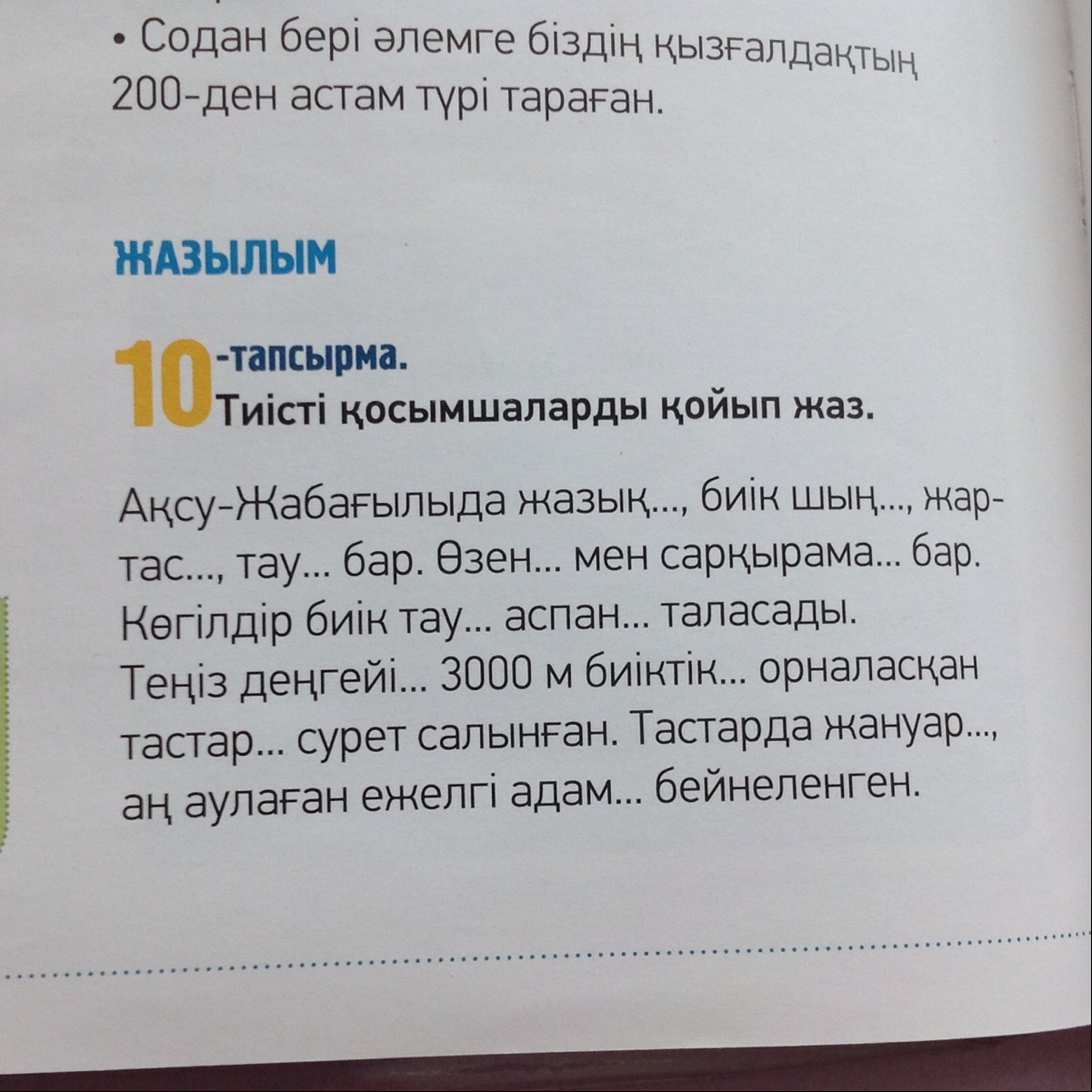 1 предложение) жазықтар, биік шыңдар,жартастар,таулар.