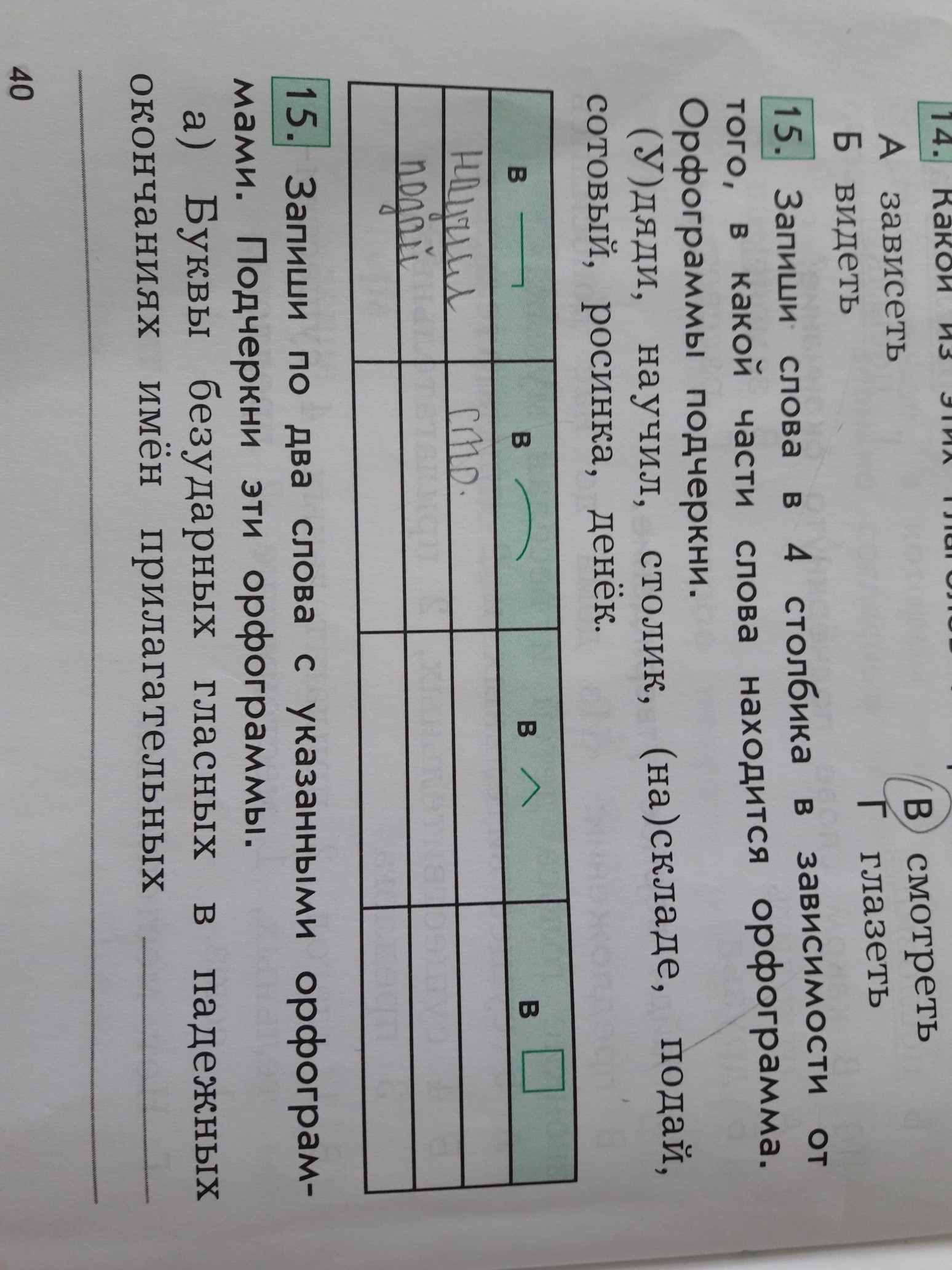 Запиши в 4 столбика в зависимости от того В какой части слова находится орфограмма орфограмму подчеркни