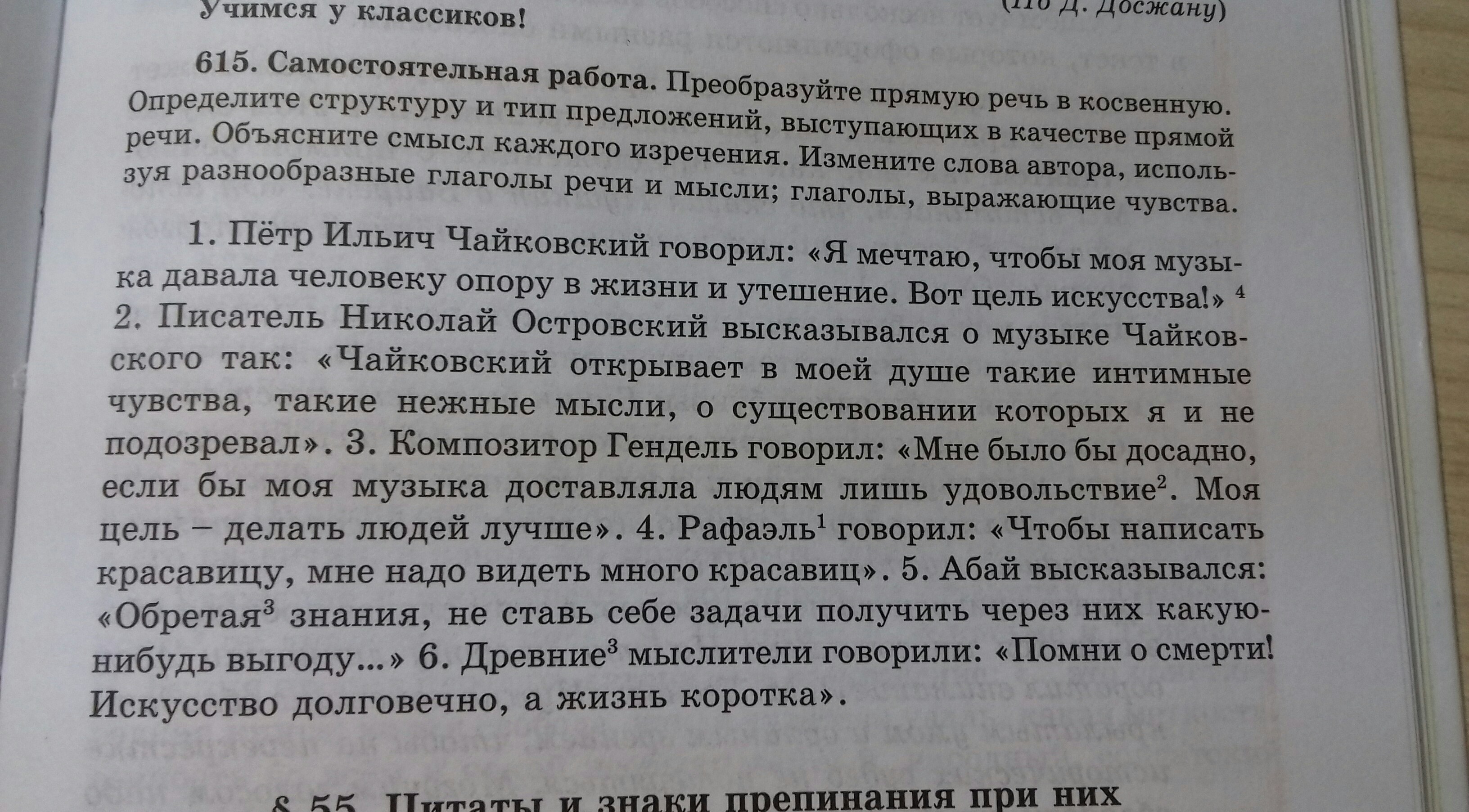 1)Петр Ильич Чайковский говорил, что он мечтал, чтобы его музыка давала человеку опору в жизни и утешение. Он считал, что это и есть цель искусства.