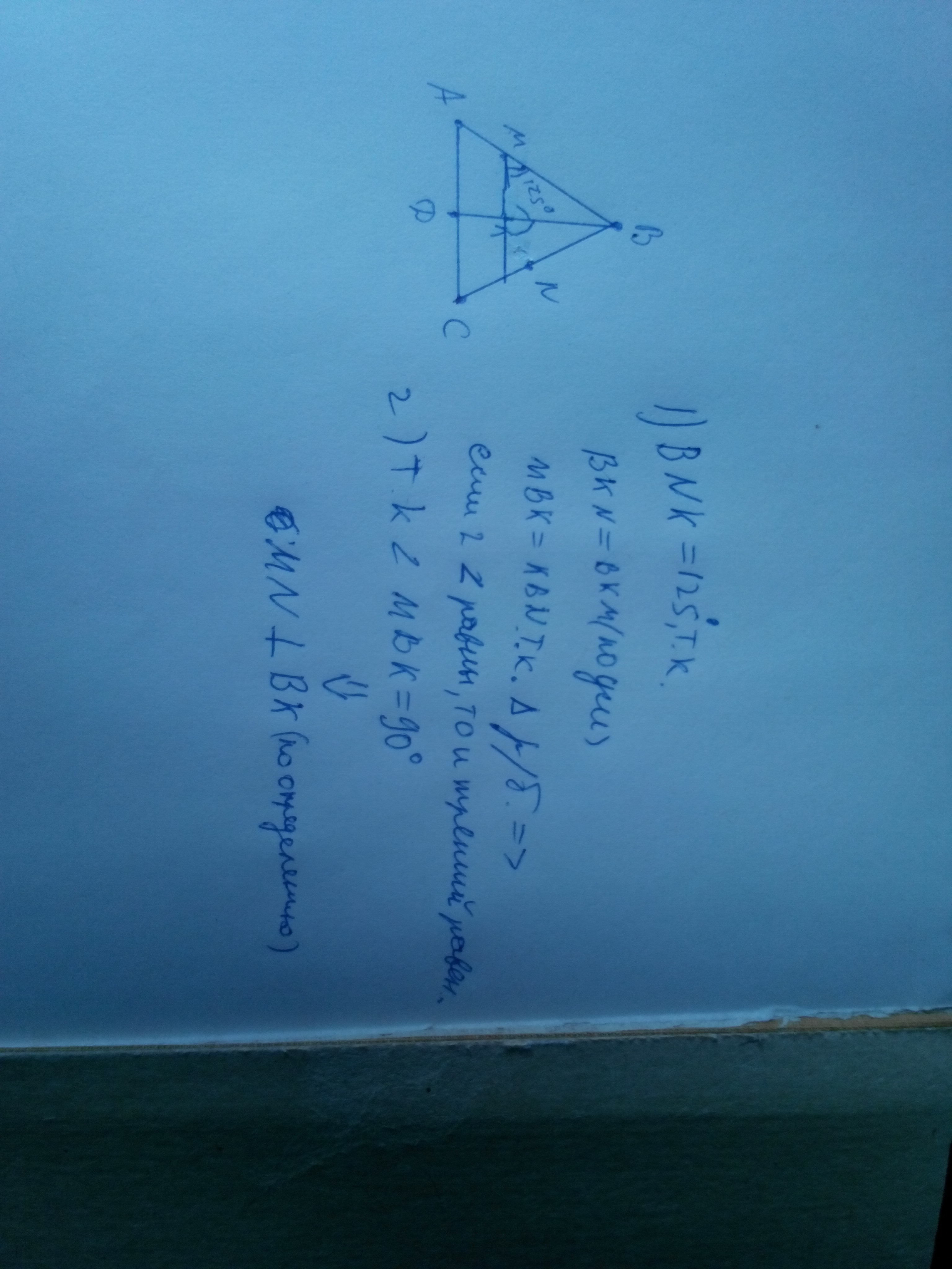 б) Доказать что прямые MN и BK взаимно перпендикулярны