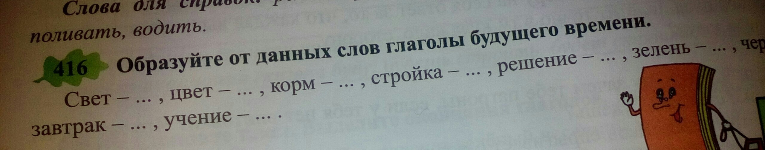Засветит, зацветёт, накормит, построит, решит, позеленеет, почернеет, позавтракает, будет учиться.