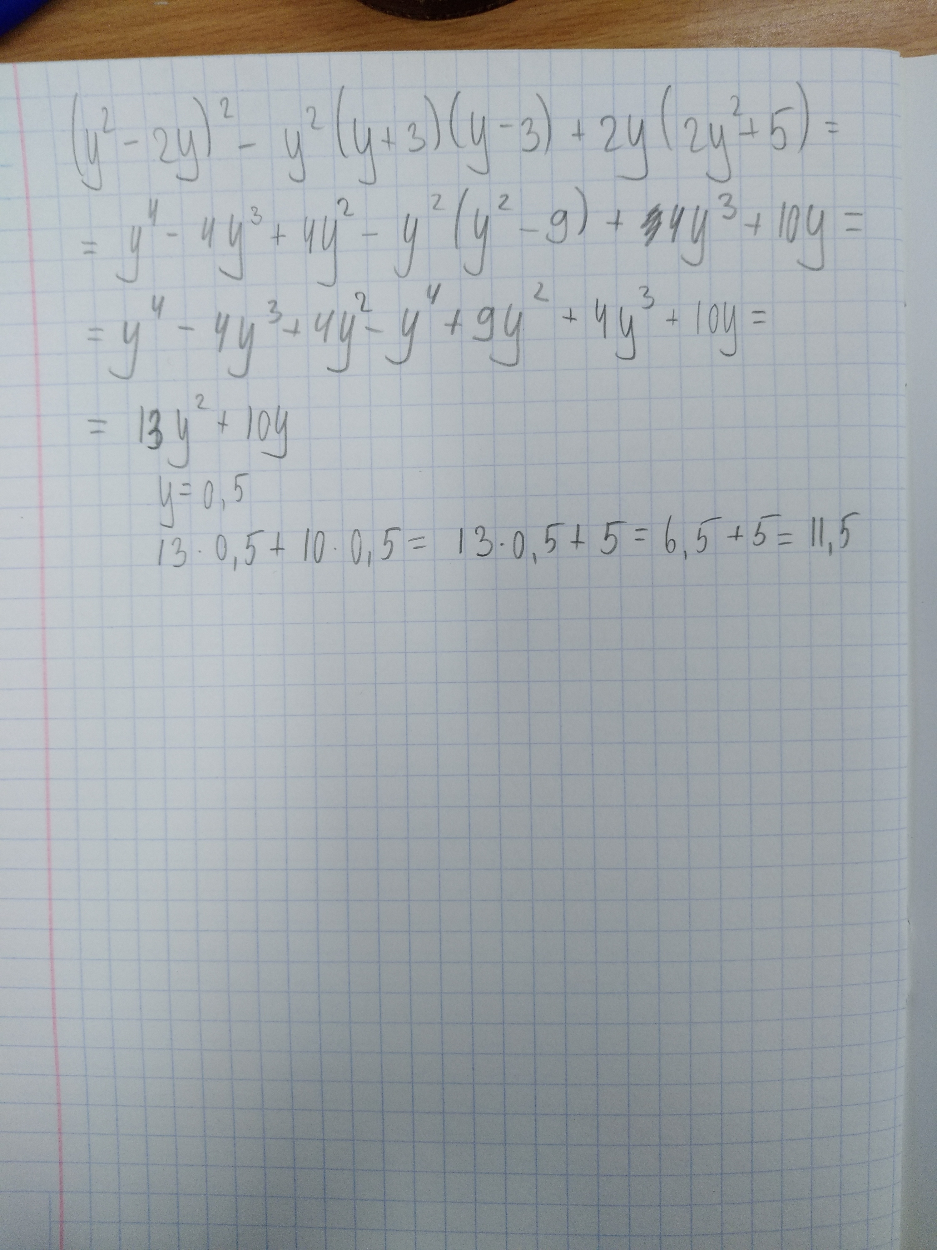 (У^2 - 2у) ^2 - у^2 (у+3) (у-3) + 2у ( 2у^2 + 5)