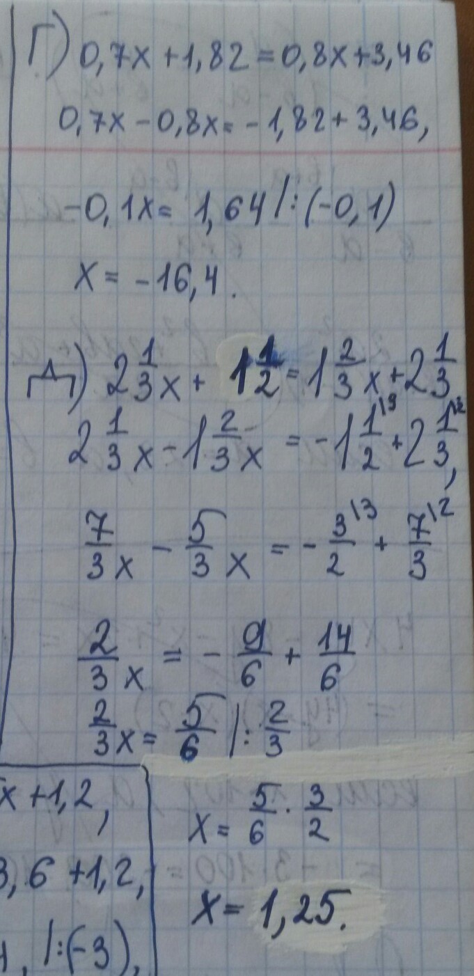 Д)2 1/3x+1 1/2=1 2/3x+2 1/3