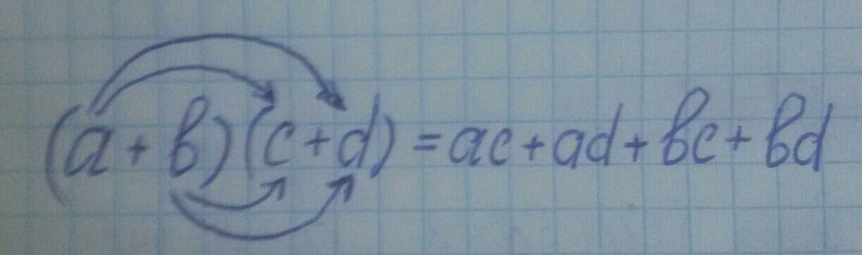 Приложил схемку для решения подобных заданий. При произведении биномов (двучленов), каждый член из первых скобок умножается на два других из соседней скобки.