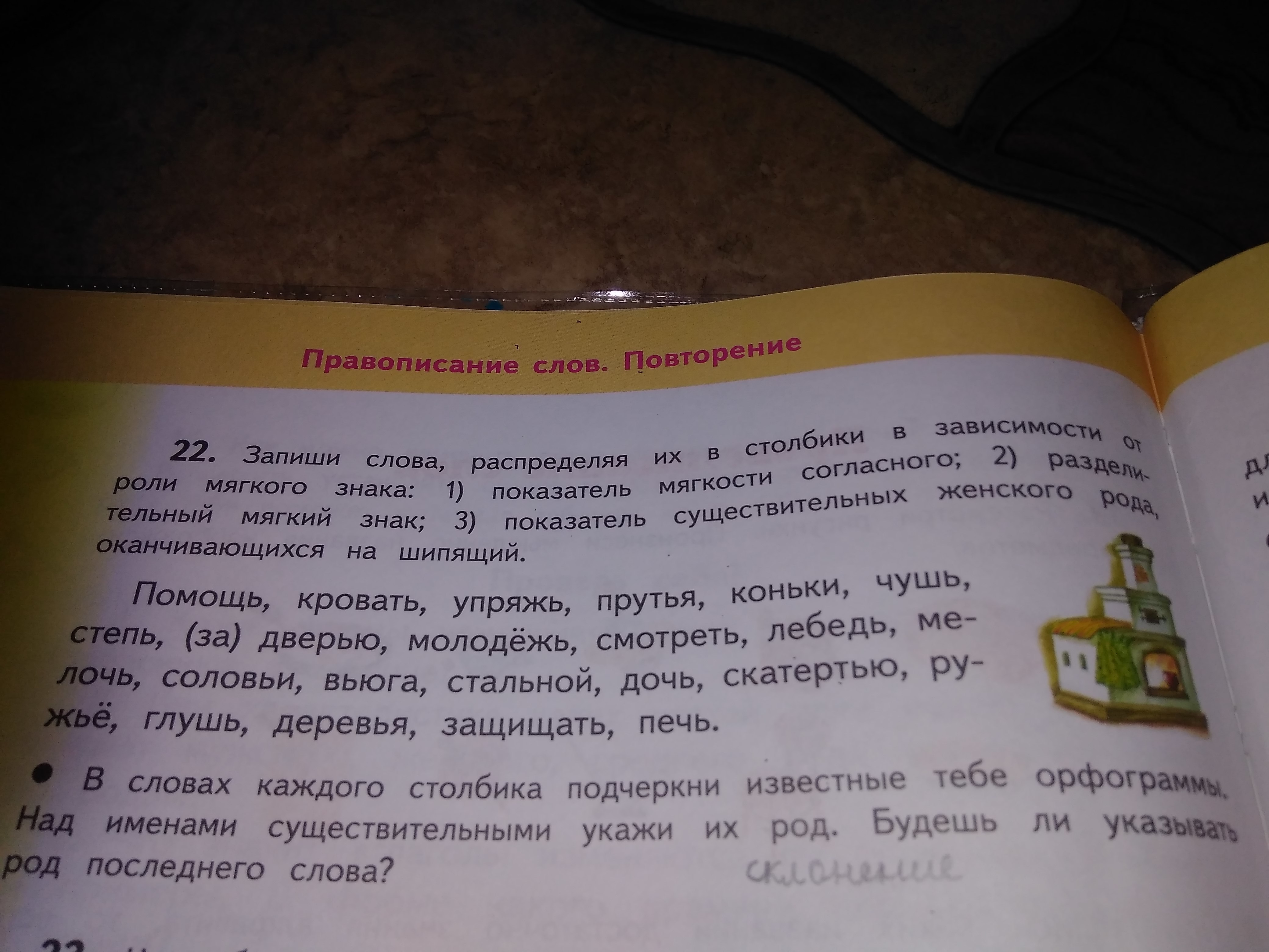 1 СТОЛБИК:Кровать, коньки, степь, смотреть,лебедь, стальной, защищать.2 столбик:прутья, дверью, соловьи,вьюга, скатертью, ружьё, деревья3 столбик:Помощь, упряжь, чушь, молодёжь, мелочь, дочь, глушь, печь