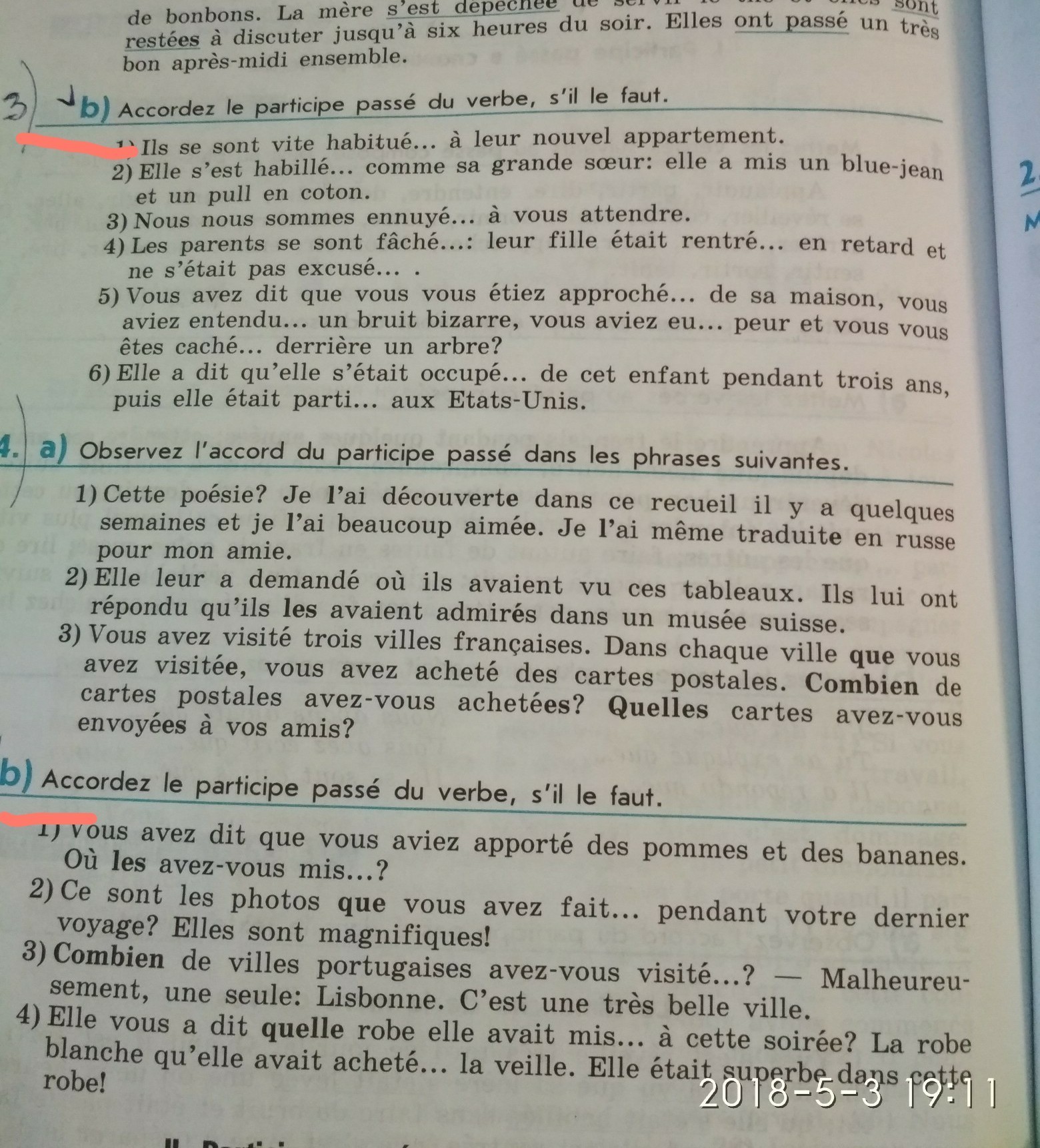 4. Les parents se sont fâchés; leur fille était rentrée en retard et ne s'était pas excusée.