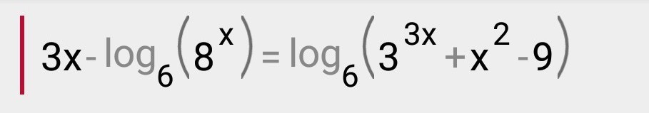 3х - log(6) ((2^3)^x) = log(6) (3^(3x) + x^2 - 9)