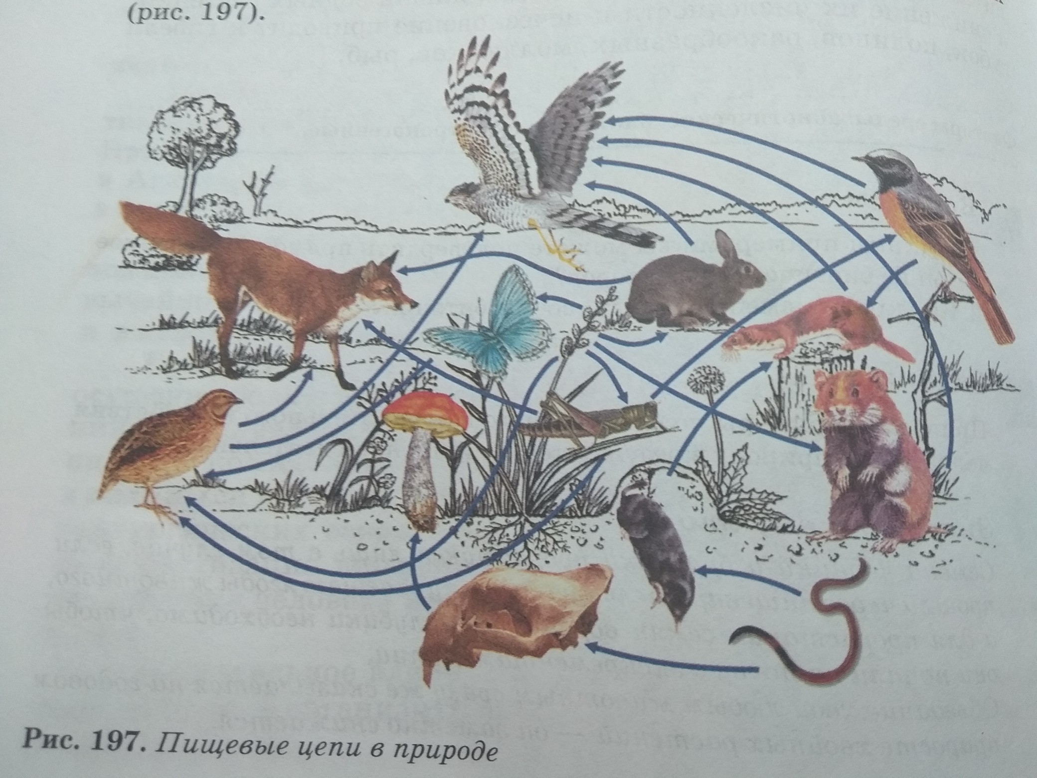 Рассмотрите рисунок. Составьте и запишите в тетради три пищевые цепи из объектов, изображённых на рисунке.