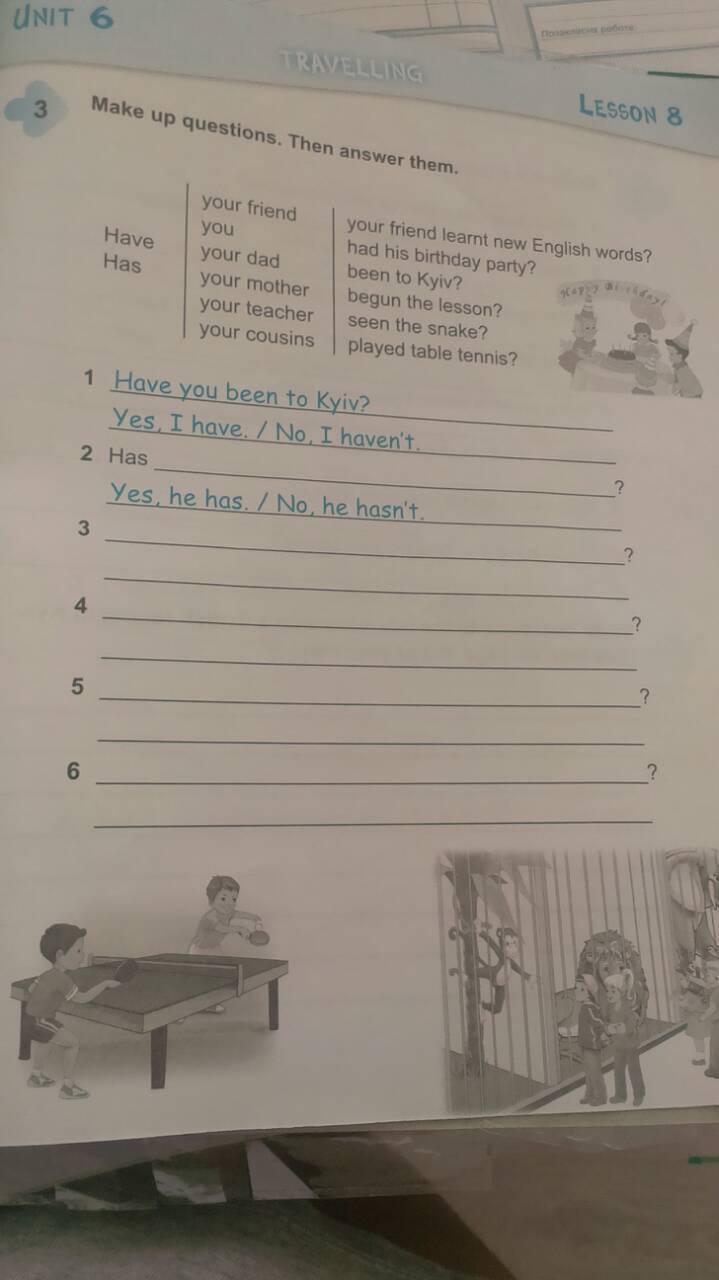 3 has your friend played table tennis? Yes he has no he hasn't и та кладём просто в рандомном порядке!! Но смотри на have и has внимательн!!
