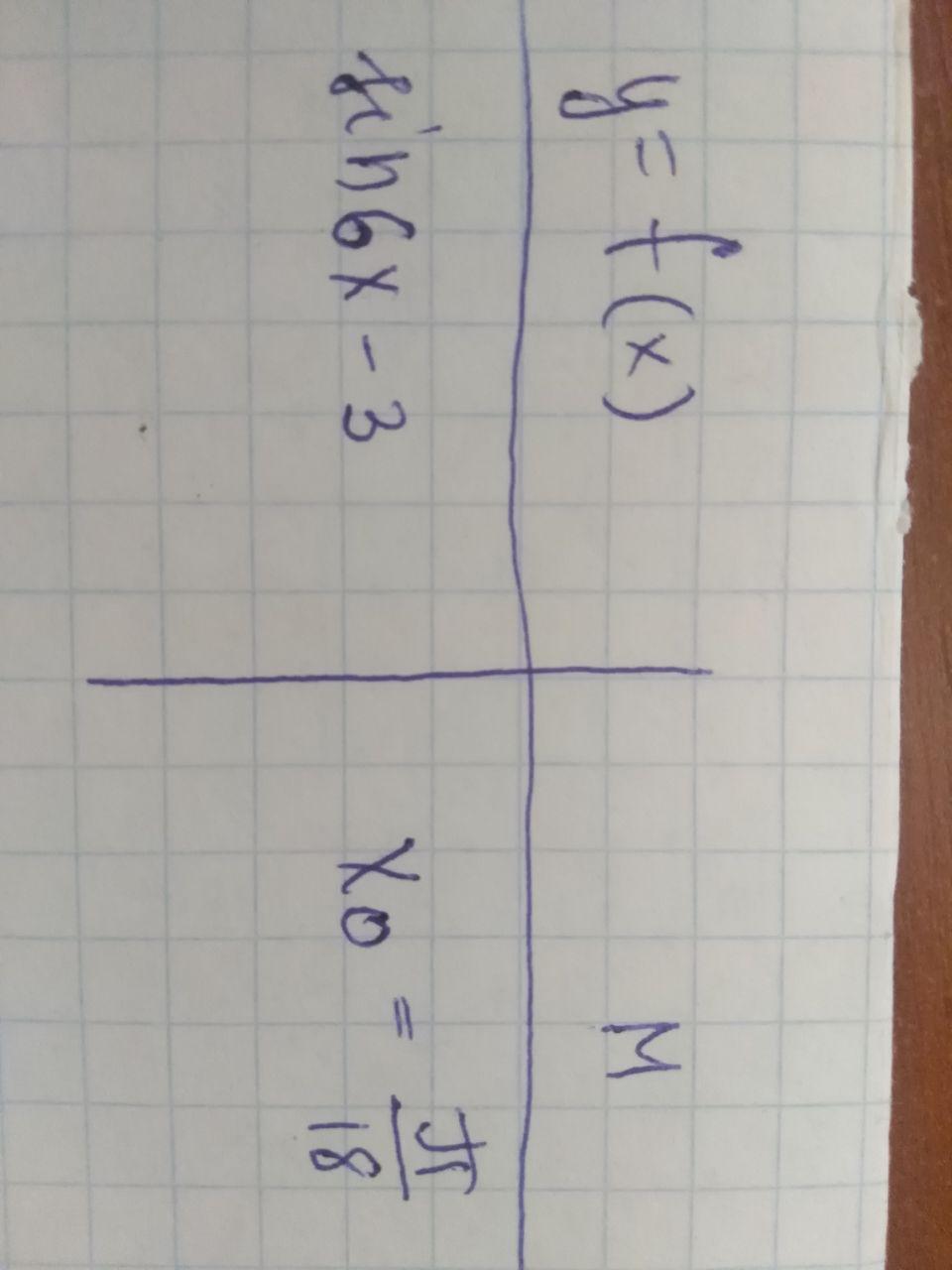 уравнение касательной g(x)=√3/2-3+3(x-pi/18)=√3/2-3+3x-pi/6=
