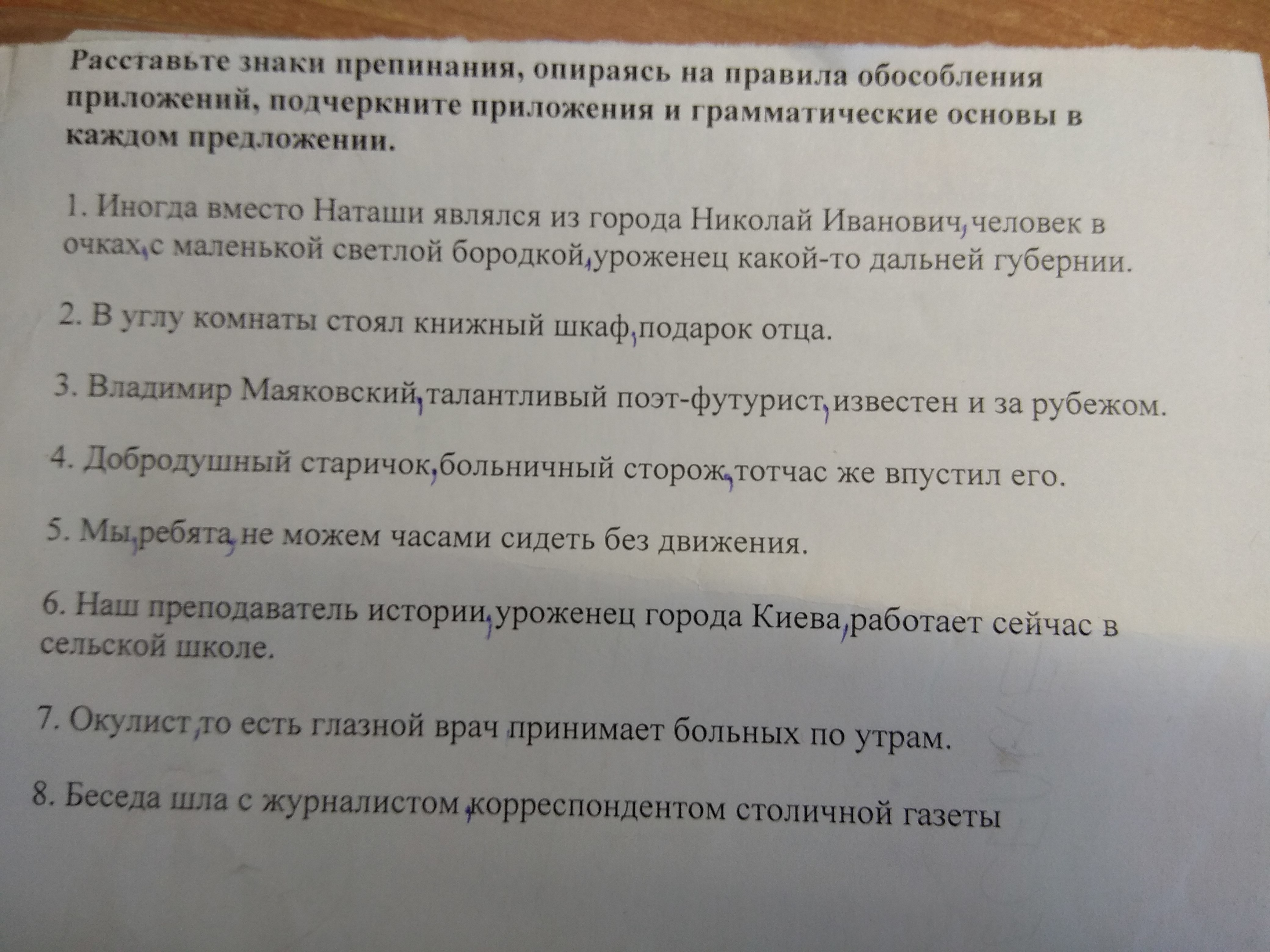 Я наставил запятые осталось только подчеркнуть приложения и грамматические основы в каждом предложении!!!Пожалуйста помогите!!!