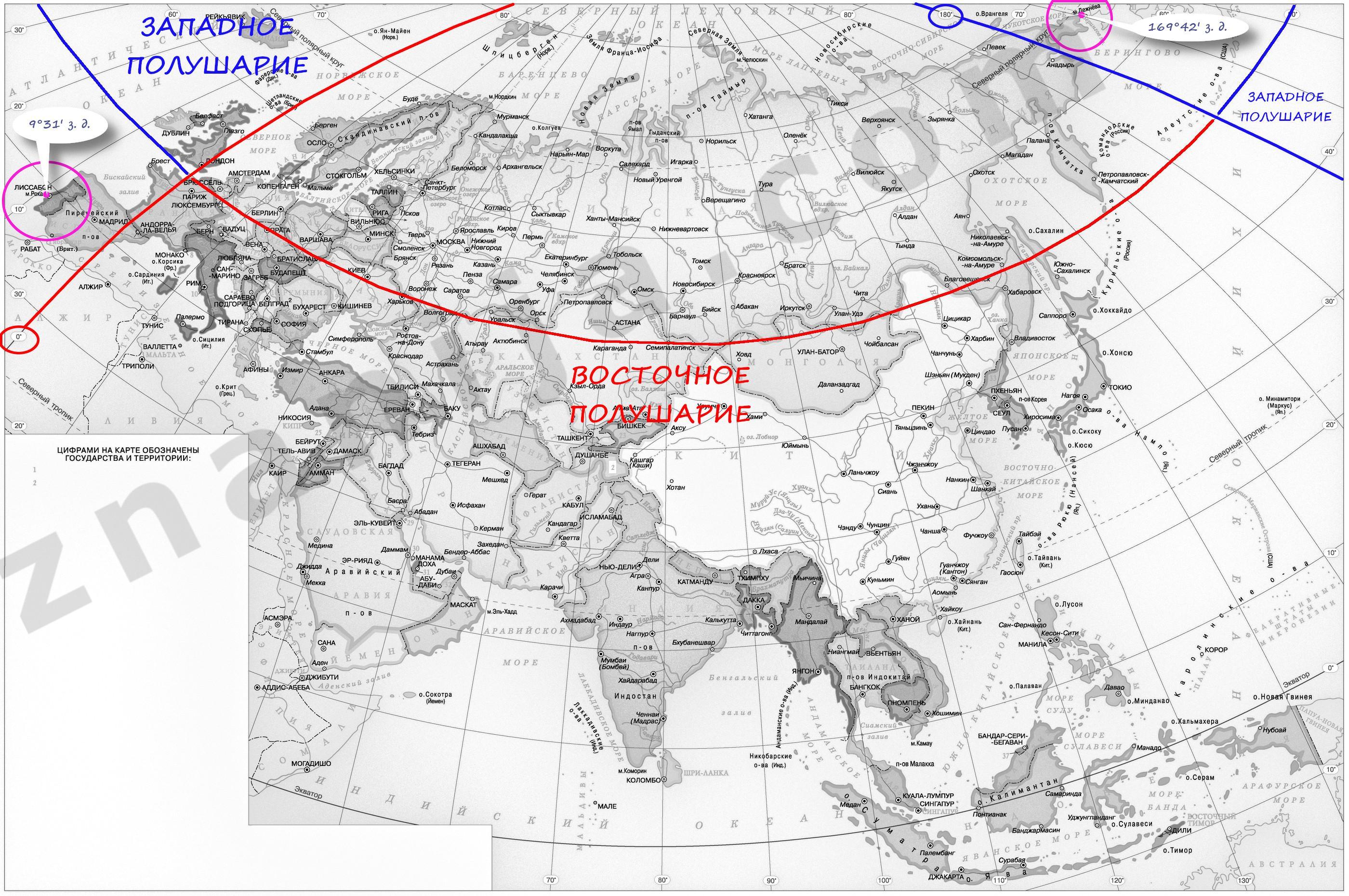 Определите по градусной сетке на сколько градусов протяжённость материка в Восточном полушарии больше,чем в Западном ( Евразия)