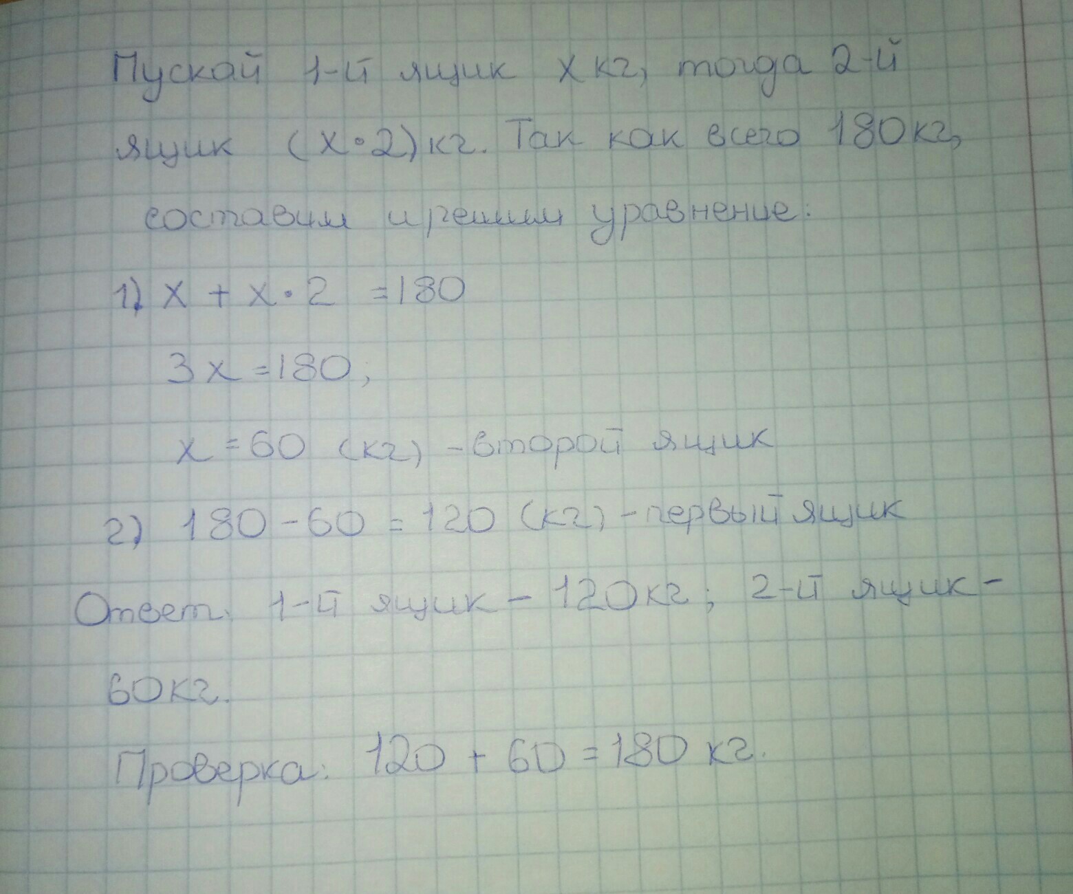 Х=180:3=60(1ящик