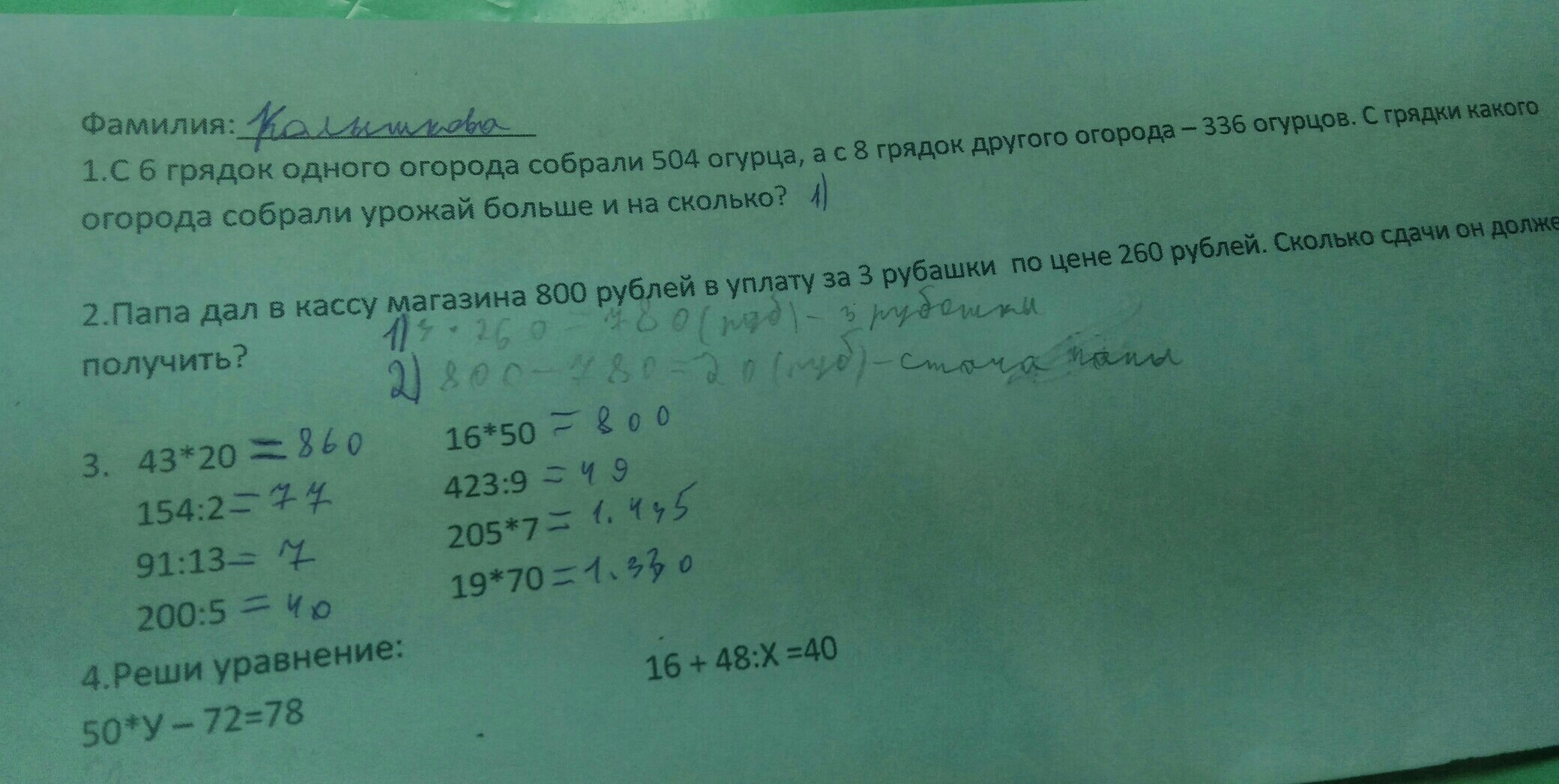задание 1.504-336=168 (огурцов) разница