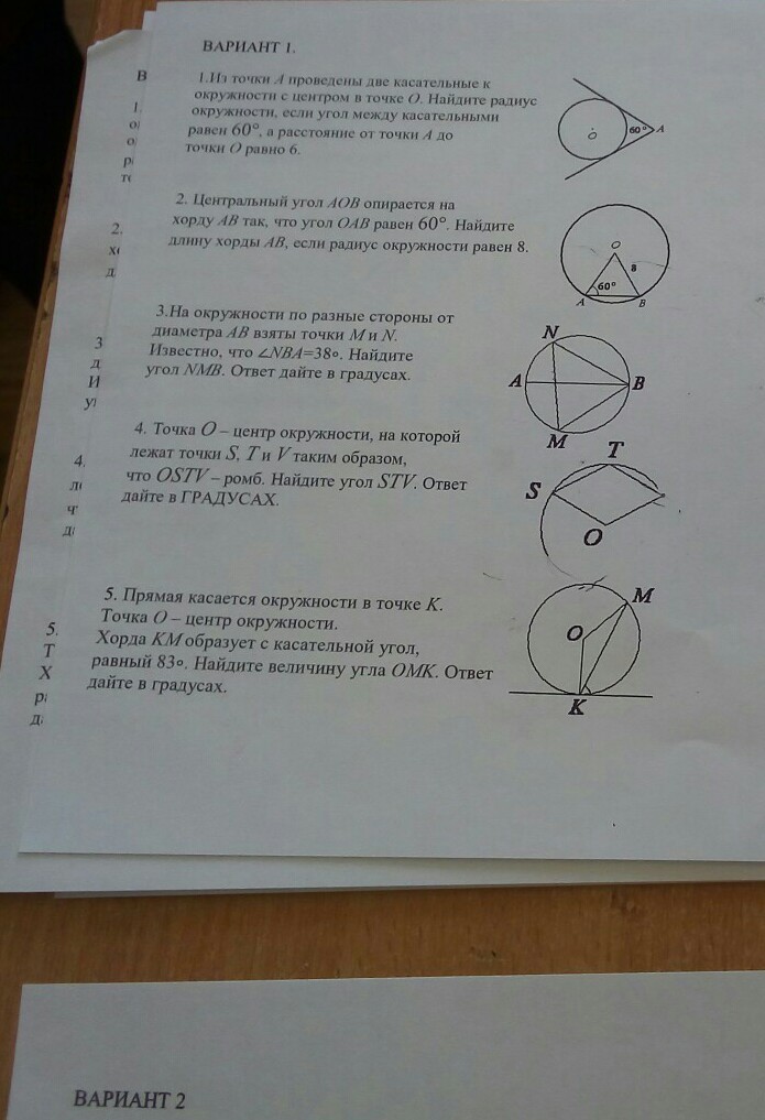 5. Радиус ОК перпендикулярен касательной, значит угол ОКМ=90-83=7º.