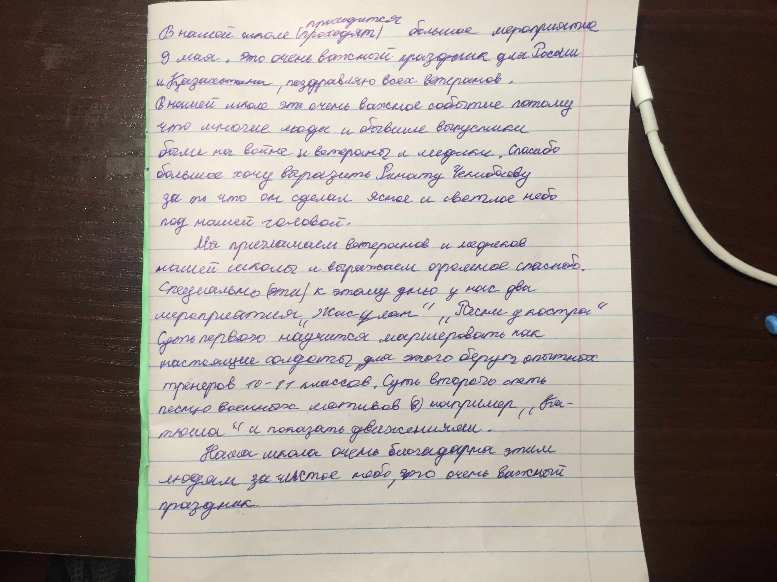 Переведите пожалуйста или напишите текст как празднуют 9 мая в нашей школе с темами маршировка и песни у костра спасибо большое каз яз