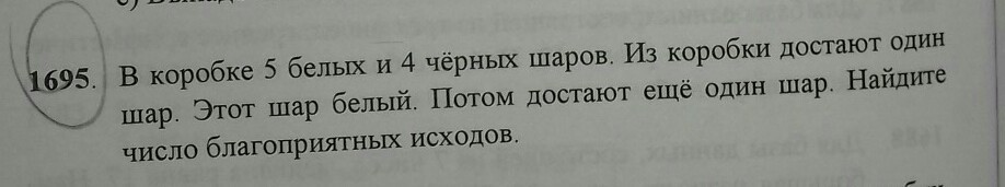 1) 5-1=4 - осталось белых шаров в коробке.