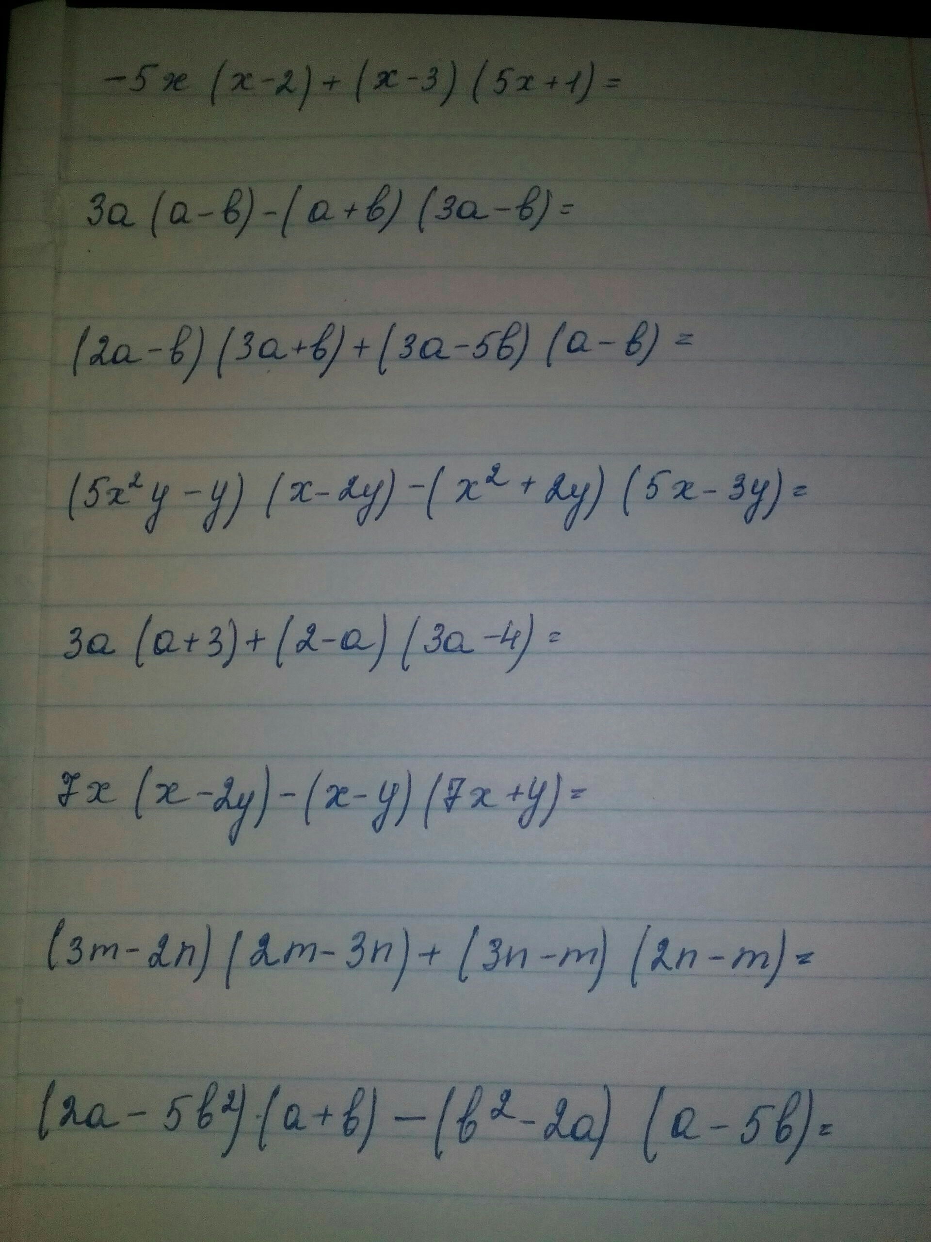 (5x²y-y)(x-2y)-(x²+2y)(5x-3y)= 5x³y-10x²y²-xy+2y²-(5x³-3x²y+10xy-6y²)= 5x³y-10x²y²-xy+2y²-5x³+3x²y-10xy+6y²= 5x³y-10x²y²-11xy+8y²-5x³+3x²y.