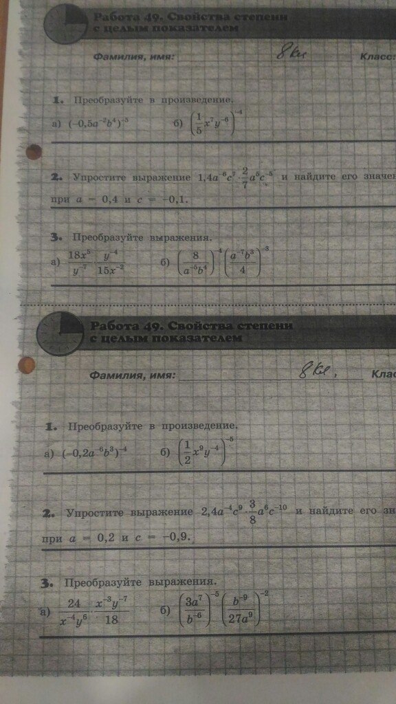 (-0,5а⁻² b⁴)⁻⁵ = (-1/2)⁻⁵ * a⁻²*⁽⁻⁵⁾ * b⁴*⁽⁻⁵⁾ = - 2⁵ а¹⁰b⁻²⁰ =-32a¹⁰b⁻²⁰