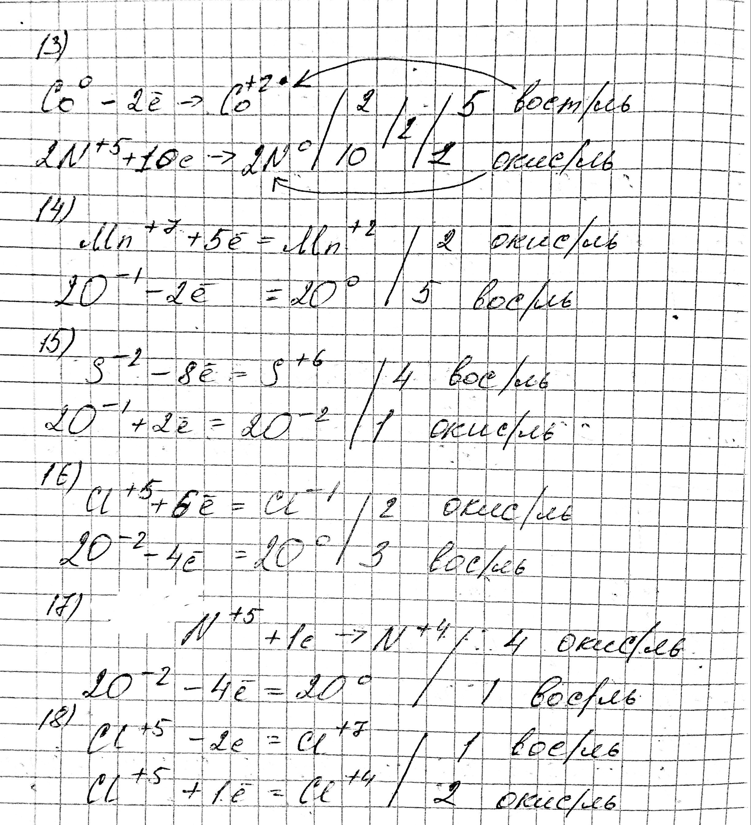 13. 5Co⁰ + 12HN⁺⁵O3 = 5Co⁺²(NO3)2 + N₂⁰ + 6H2O