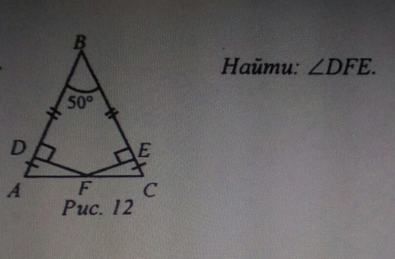 сумма углов любого выпуклого многоугольника - 360°. в данном случае это четырёхугольник. у нас есть три угла, можем найти и четвёртый. значит, угол DFE равен 360°-90°-90°-50°=130°.
