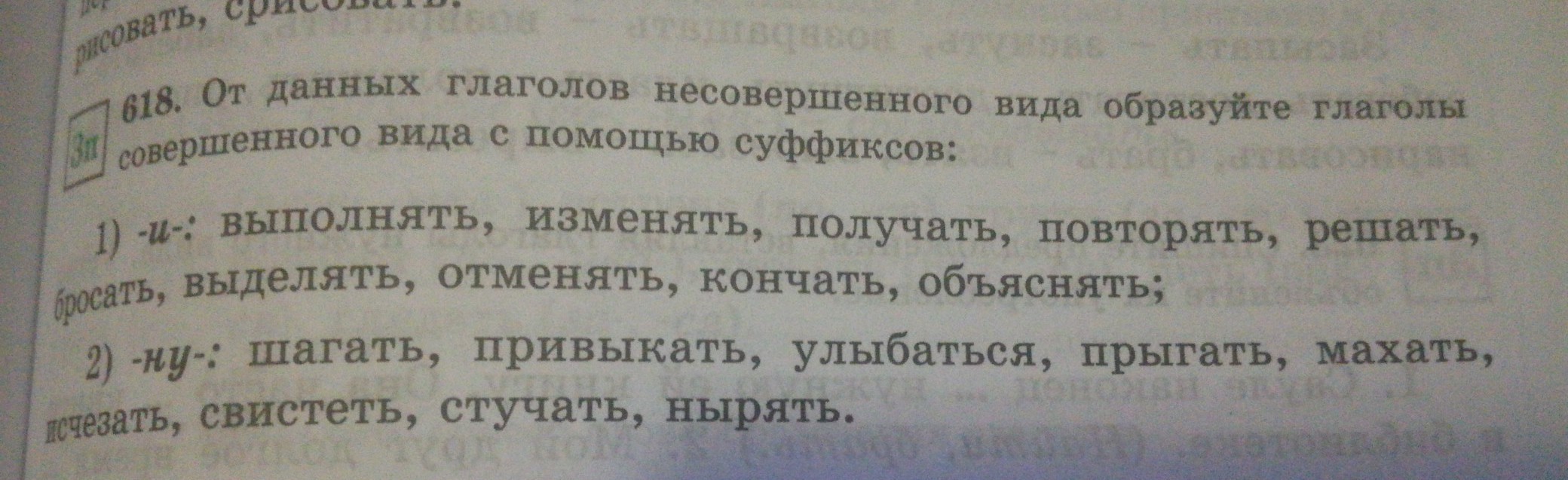 1) выполнить, изменить, получить, повторить, решить, бросить, выделить, отменить, кончить, объяснить;