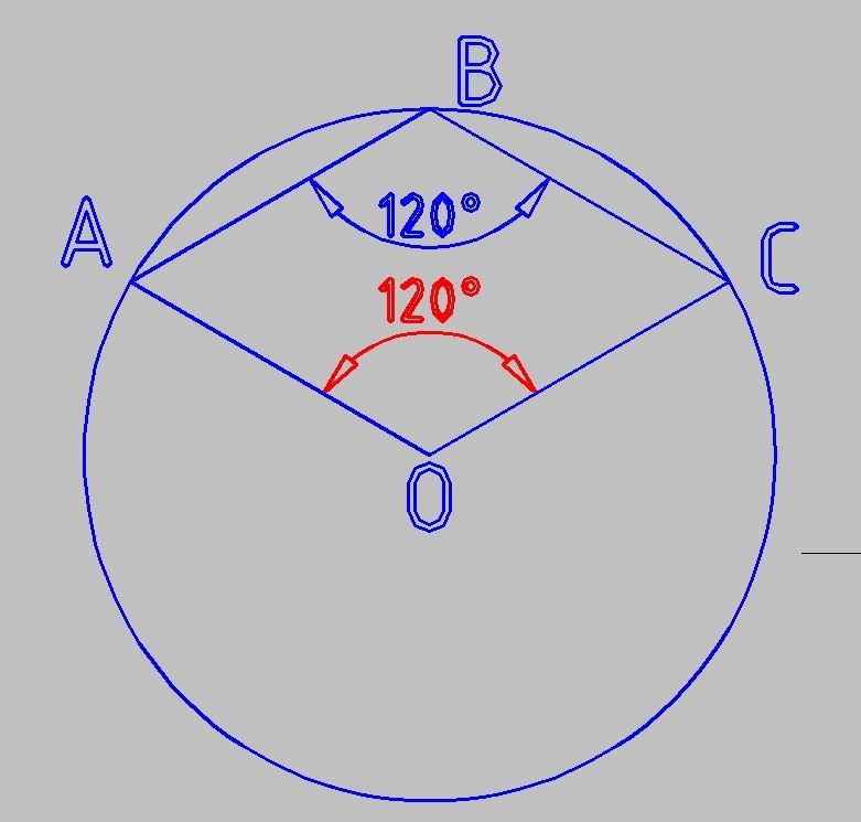 ∠АОС = ∩АВС = 120° - центральный угол равен дуге, на которую опирается.